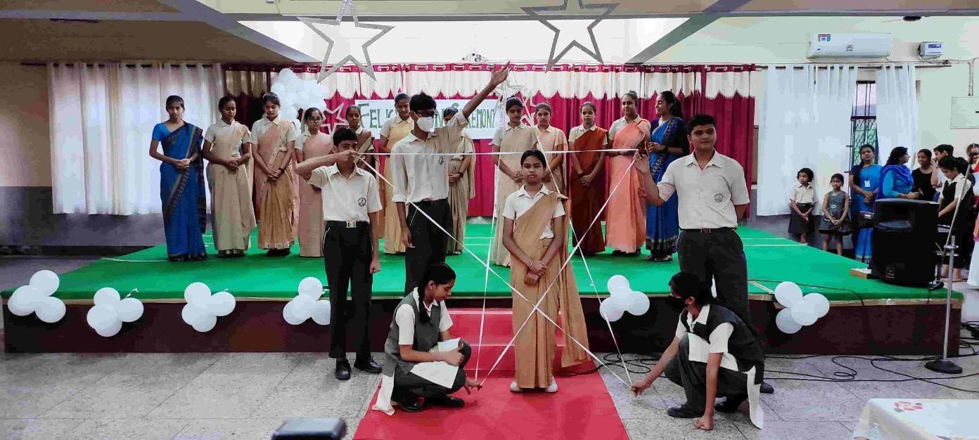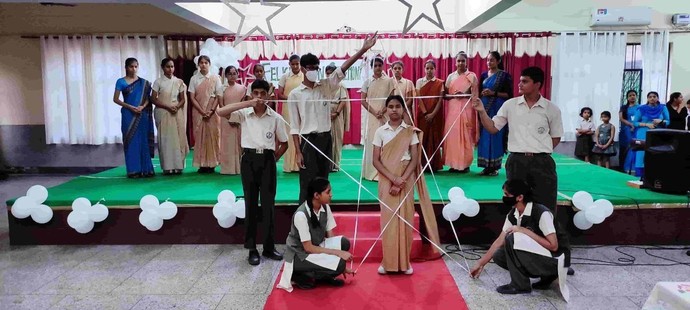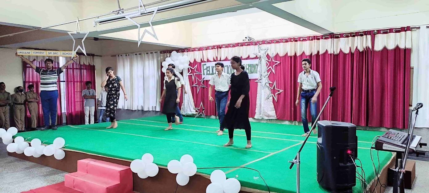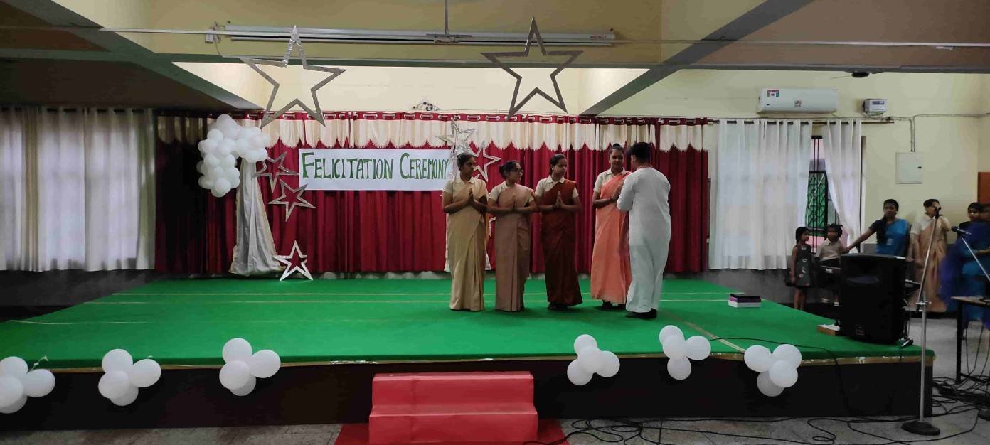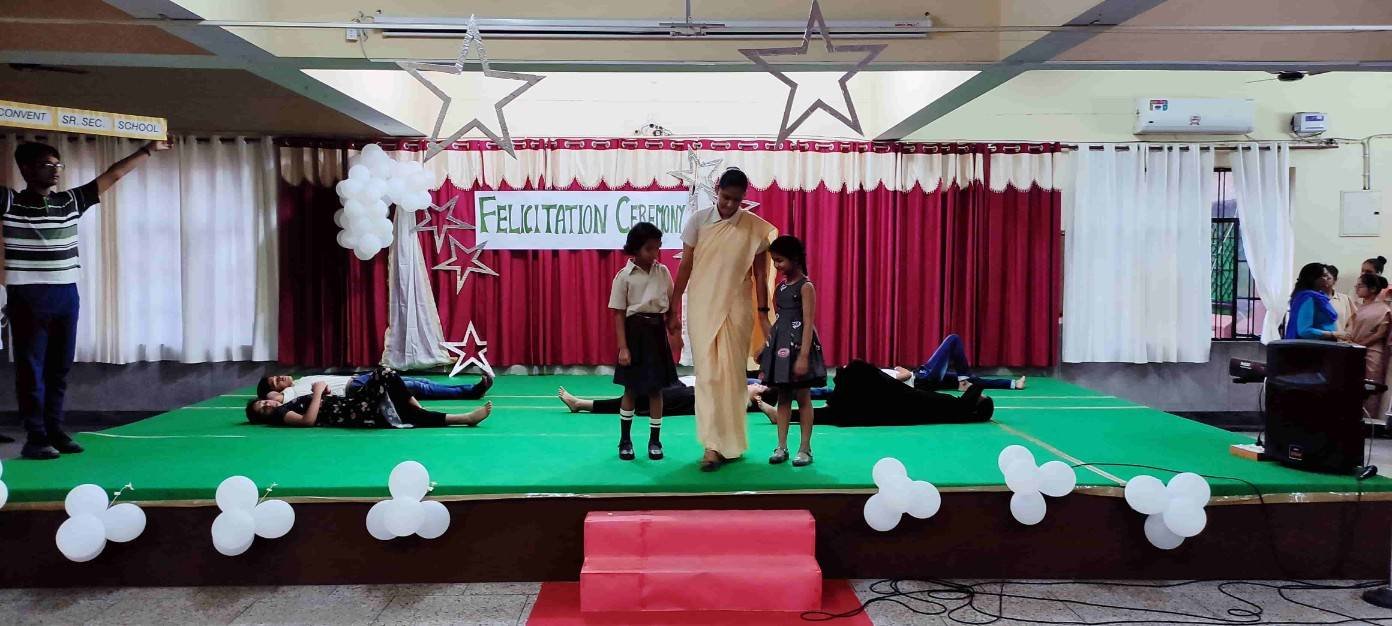 Today on 23rd May 2022 we had the felicitation ceremony for our Rev. Sr. Celine Mathew in honour of her as she is elevated as the provincial superior of the Nirmala province of the UMI's and the president of the Nirmala education society. This felicitation program was organised by Mrs Shalini Saxena, Mrs Poonam Verma and Mrs Deepika. The ceremony was started with the lighting of the lamp by our Rev. Sr. Celine. Then we had a very graceful performance by our prayer dance students. After that our music choir gave a sweet and warm welcome to our beloved Sr. Celine. It was a very kind and hard warming welcome. Then our students presented a short and sweet enactment representing the journey of our alma mater. They showed us a glimpse of the past glory of our institution. They showed how are school has reached to its Pinnacle from the Rock bottom in a very heart touching way. They enacted the journey and struggles of various sisters and how they have tackled the difficult situations like Covid-19 pandemic and started the online education for the students of our school. With her determination and hard work our Principal Rev. Sr. Rekha managed to save 2 precious years of the student specially the board classes. After that we invited Rev. Sr. Celine up on the stage and presented a small token of love to her. Then Sr.Celine inspired us with her words of wisdom. Rev. Sr. Thelma our Manager also presented a bouquet of love to our beloved Sr.Celine. Then the ceremony was concluded by the incisive words of our Principal Rev. Sr. Rekha. Later the sweets were distributed among the students as a sweet remembrance of Sr. Celine felicitation.