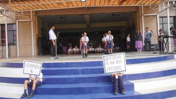 GRATTITUDE IS THE BEST ATTITUDE (Vitamin G ) If the only prayer you ever say in your entire life is "Thankyou", it will be enough. Grattitude which nourishes our body, mind and soul is the branded attitude. Class III students of section Q presented today's morning assembly on the topic GRATTITUDE IS THE BEST ATTITUDE wonderfully and effectively communicated the importance of thankfullness and optimistic approach in our lives. So let's all be grateful and cherish every moment of our life. Thanks