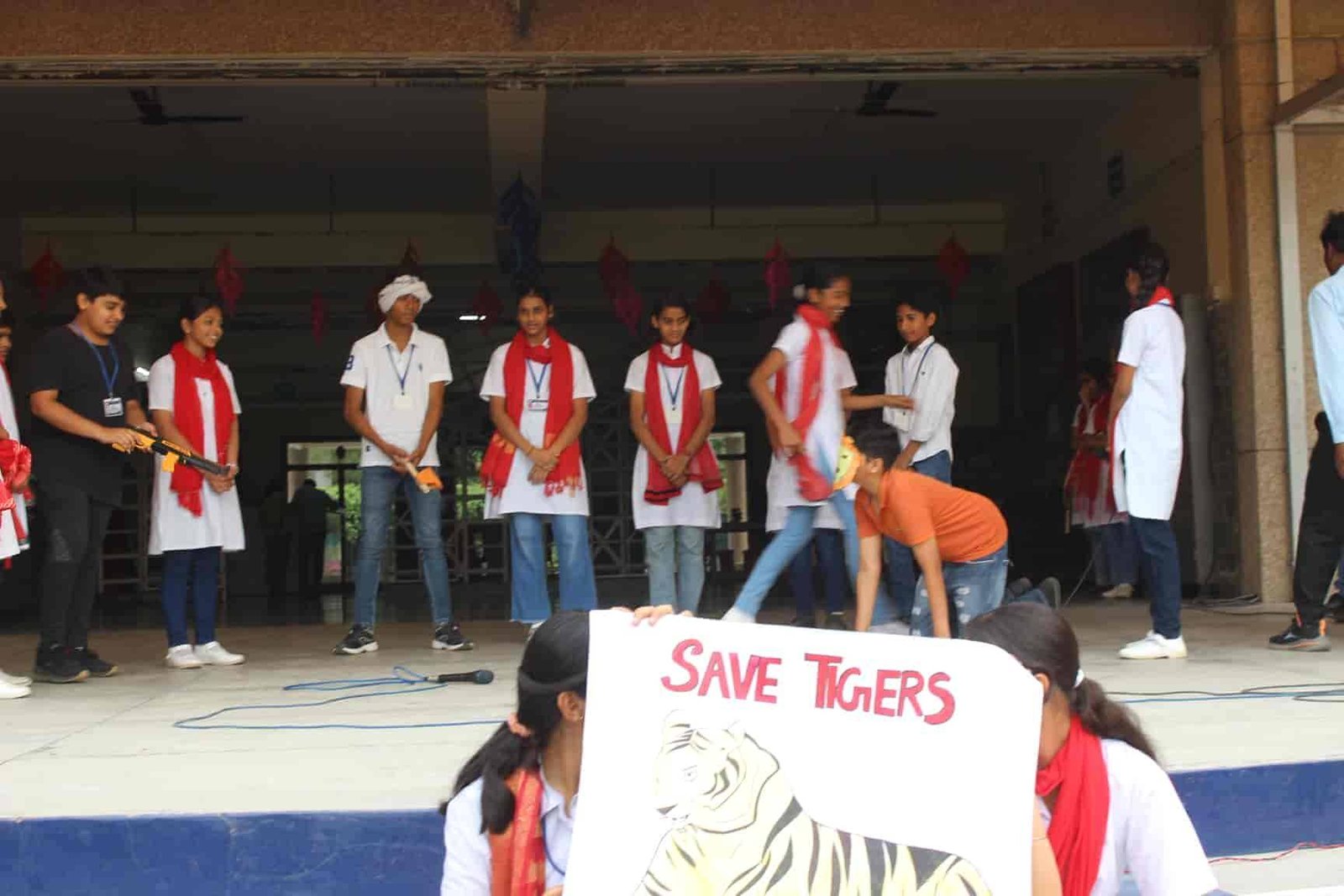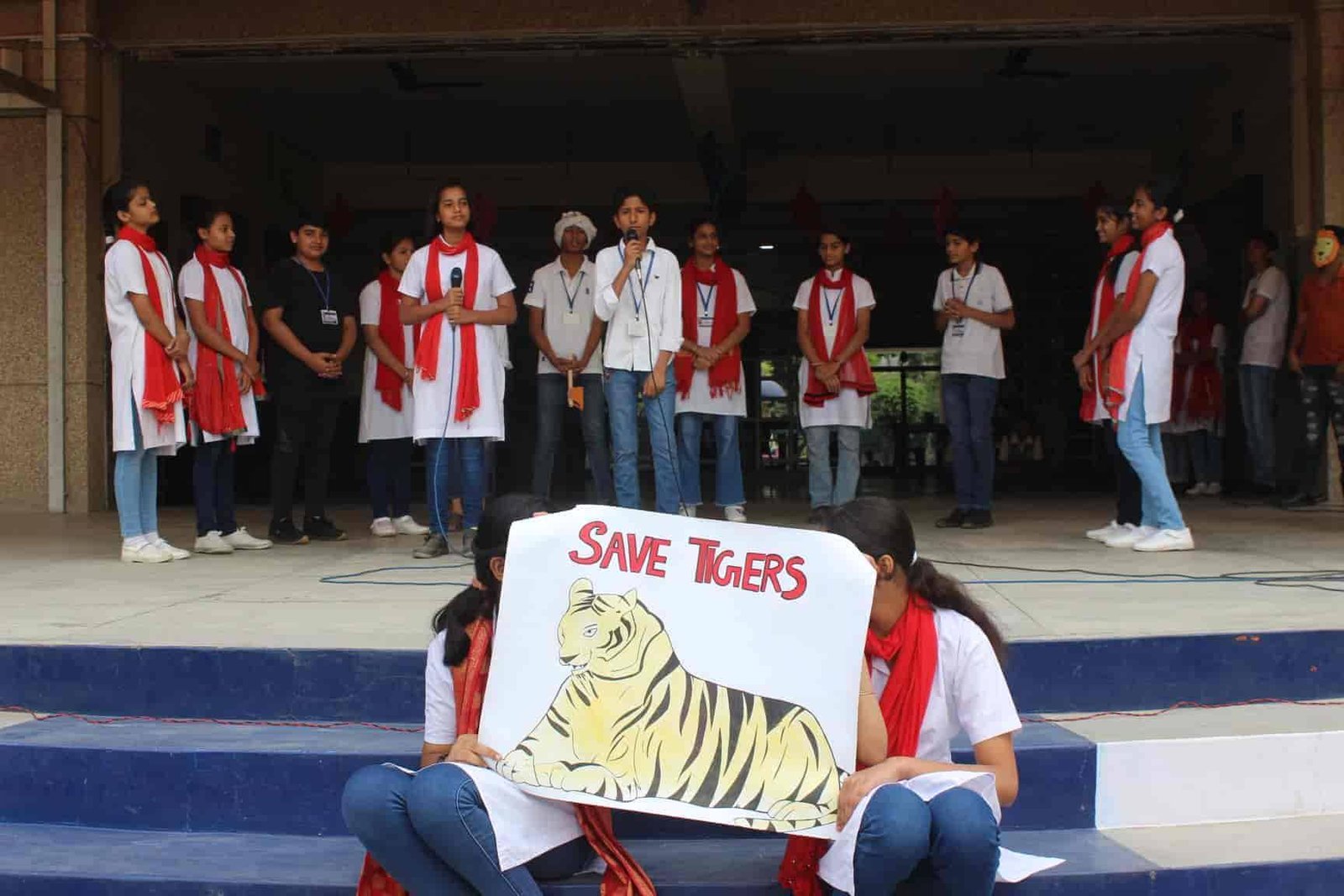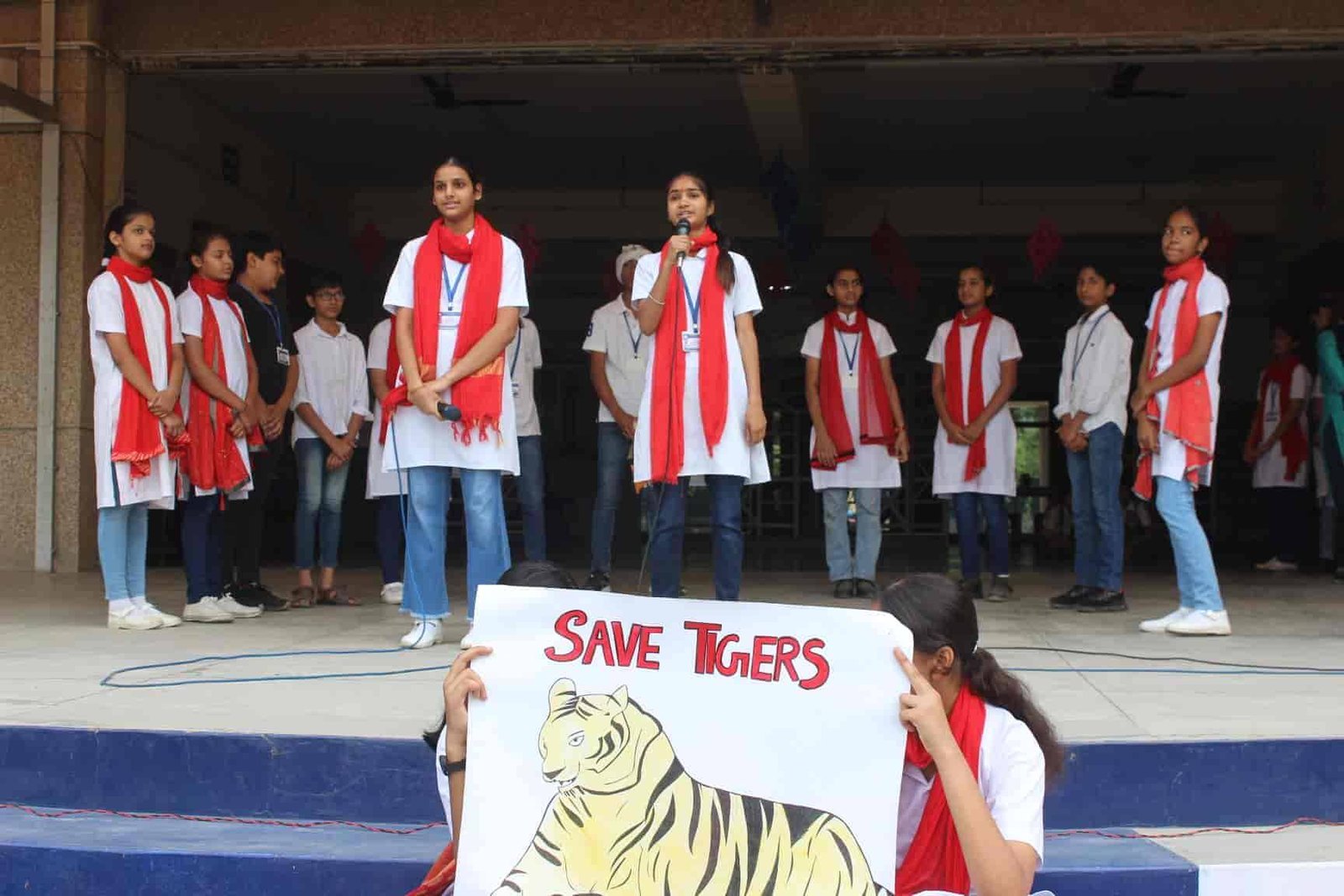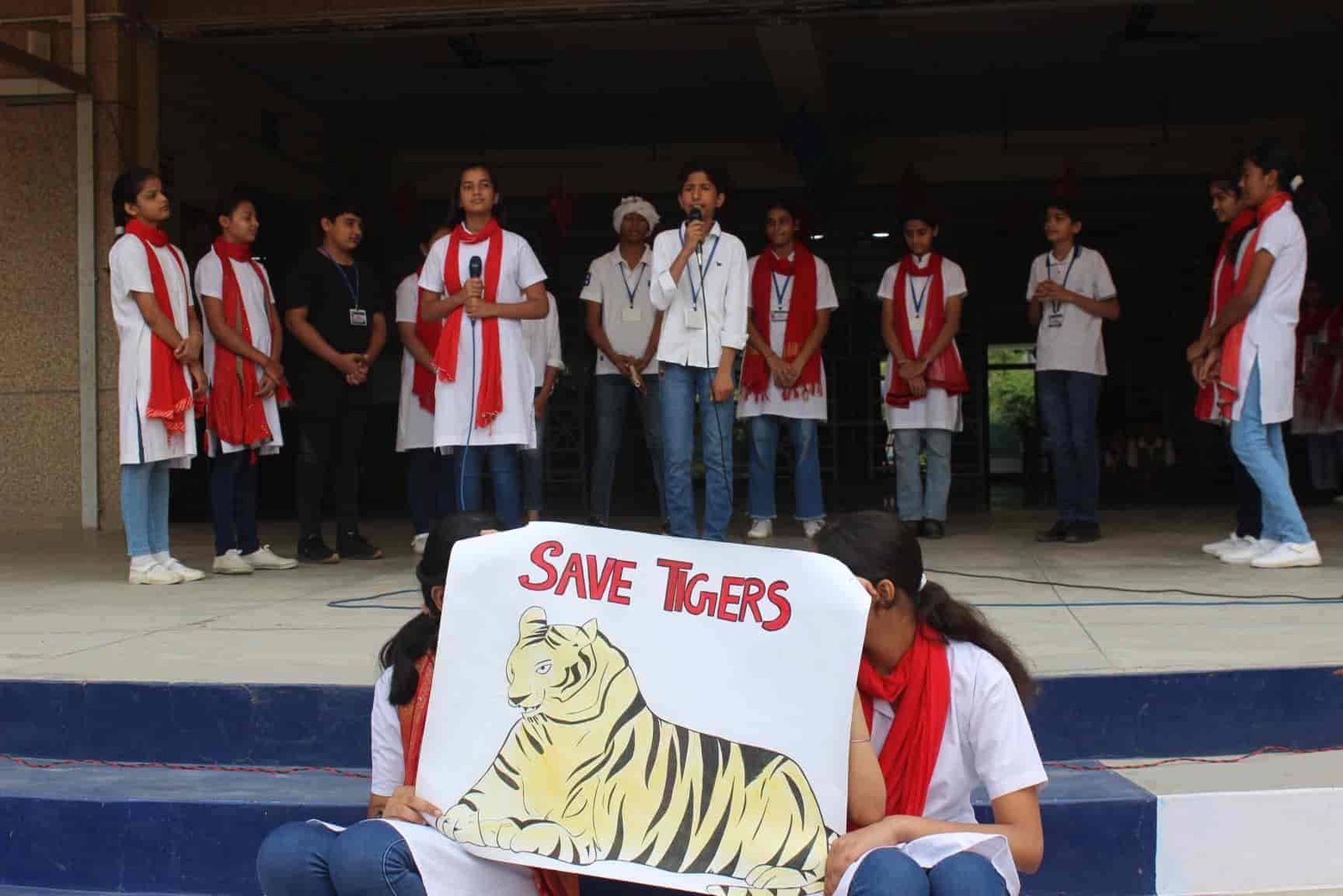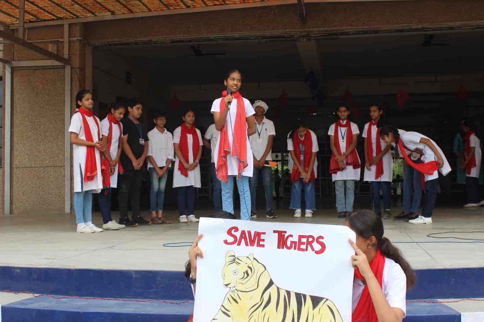 " SAVE TIGERS " The Morning Assembly on 20/04/23 was based on the Sensational Topic " Don't Stripes The Stripes from Scenenary Save Tigers" This issue holds great importance in present context . It was beautifully portrayed by students of VIII Q in the form of a meaningful Nukkad Natak and Poem . The Assembly also threw light on the measures that can be adopted to Save Tigers.