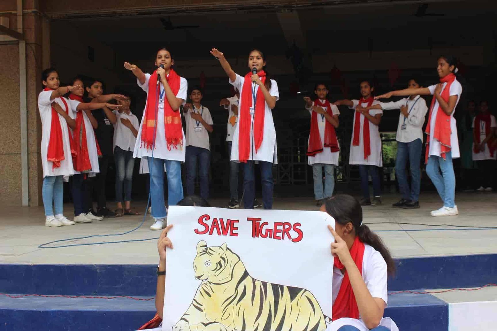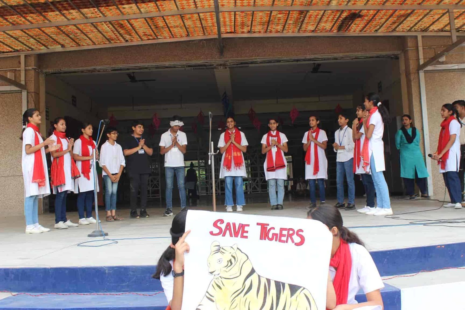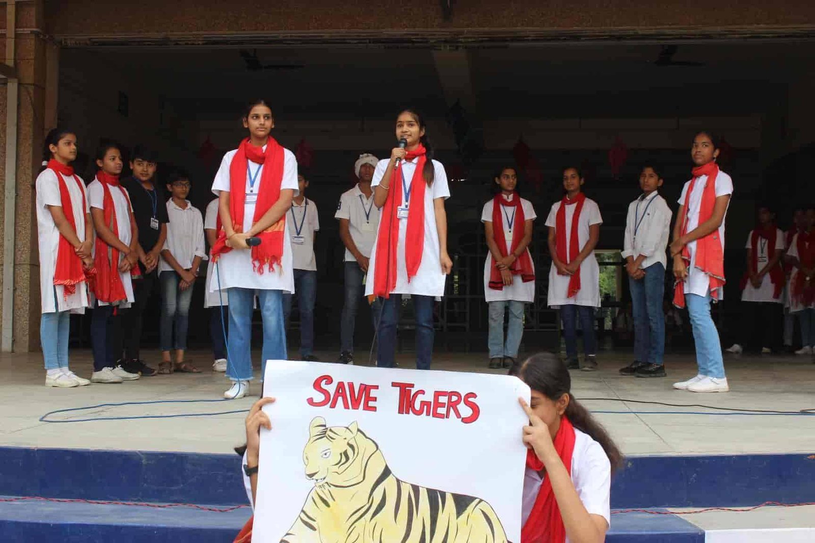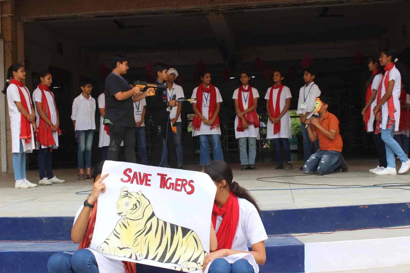 " SAVE TIGERS " The Morning Assembly on 20/04/23 was based on the Sensational Topic " Don't Stripes The Stripes from Scenenary Save Tigers" This issue holds great importance in present context . It was beautifully portrayed by students of VIII Q in the form of a meaningful Nukkad Natak and Poem . The Assembly also threw light on the measures that can be adopted to Save Tigers.