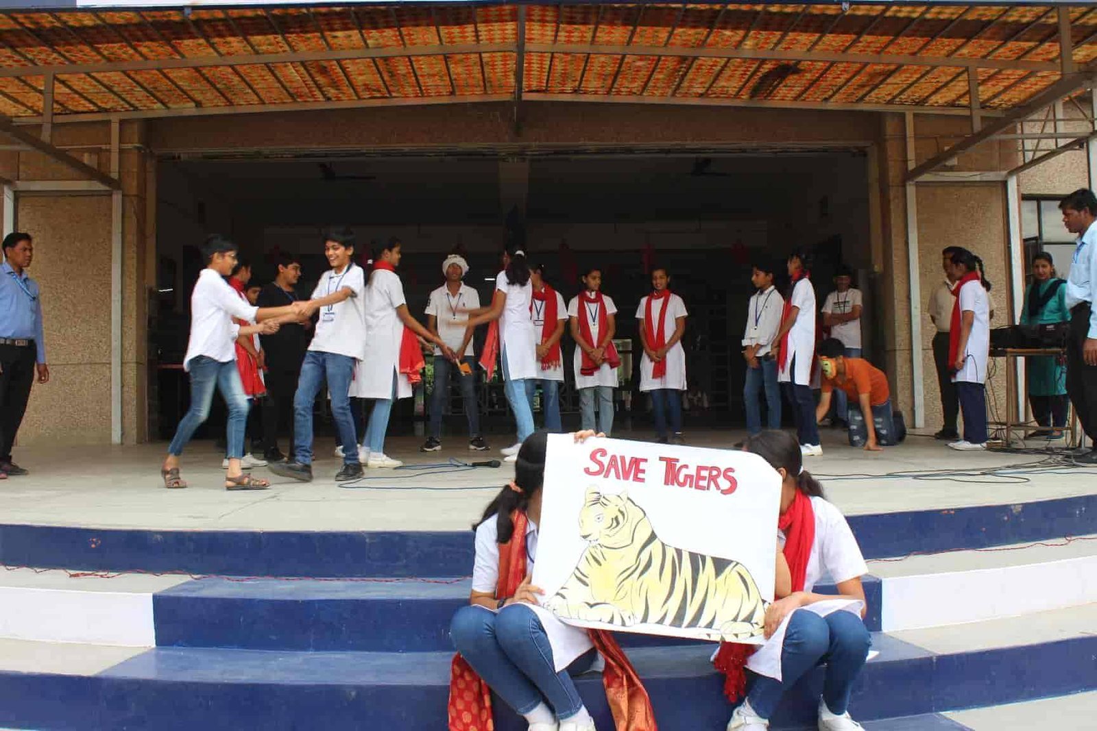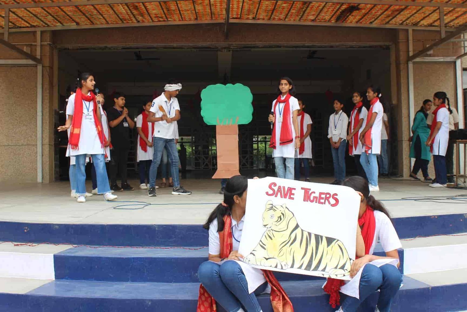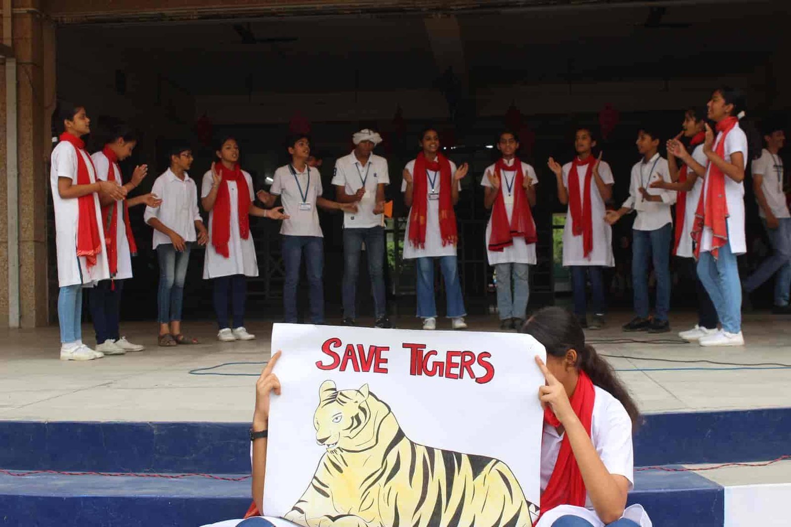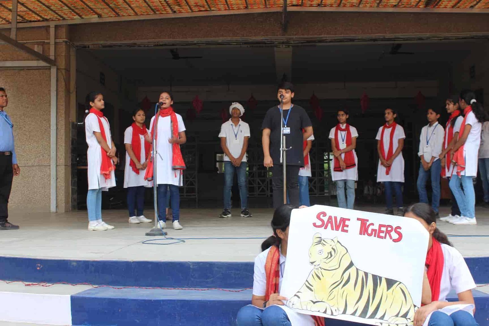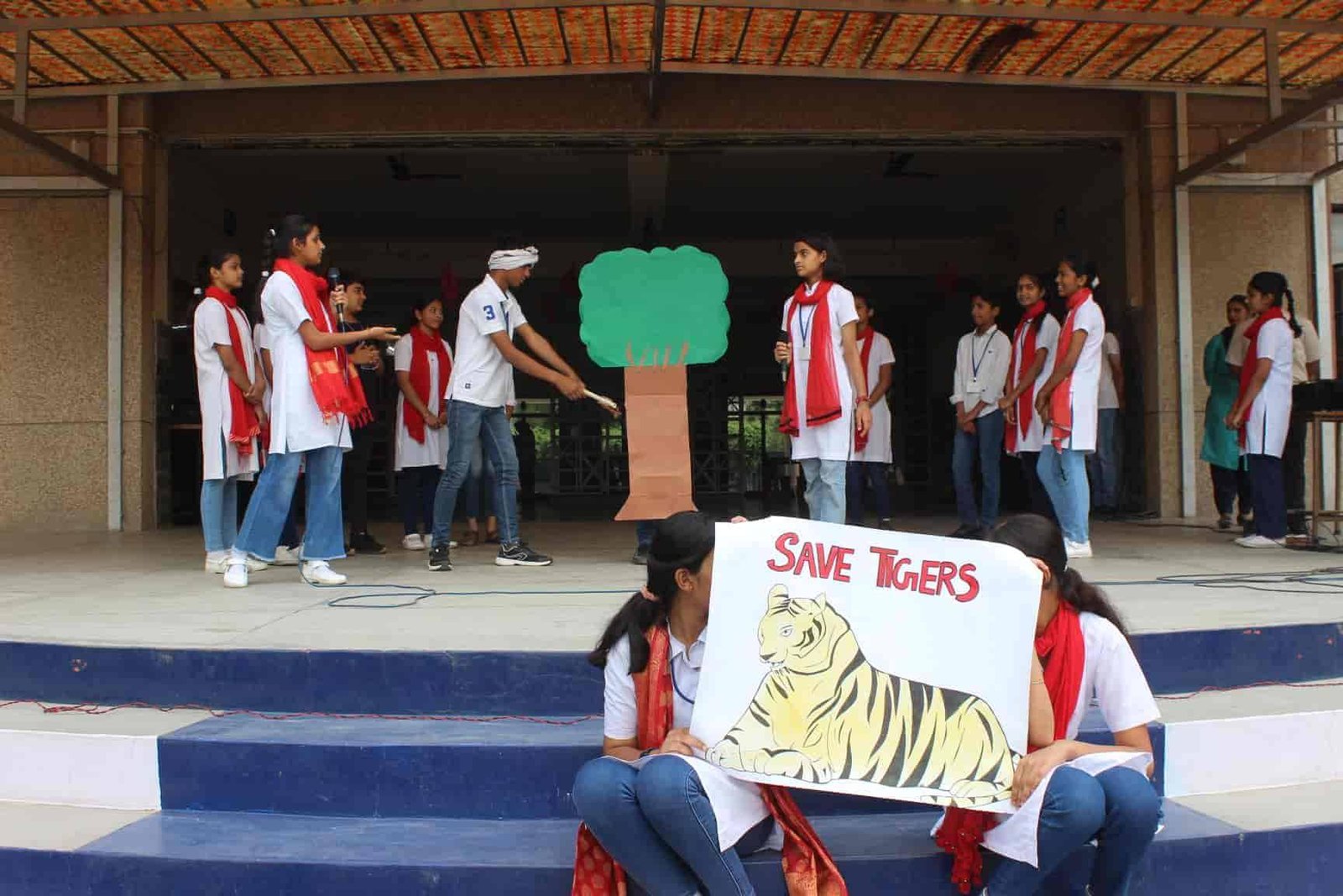 " SAVE TIGERS " The Morning Assembly on 20/04/23 was based on the Sensational Topic " Don't Stripes The Stripes from Scenenary Save Tigers" This issue holds great importance in present context . It was beautifully portrayed by students of VIII Q in the form of a meaningful Nukkad Natak and Poem . The Assembly also threw light on the measures that can be adopted to Save Tigers.