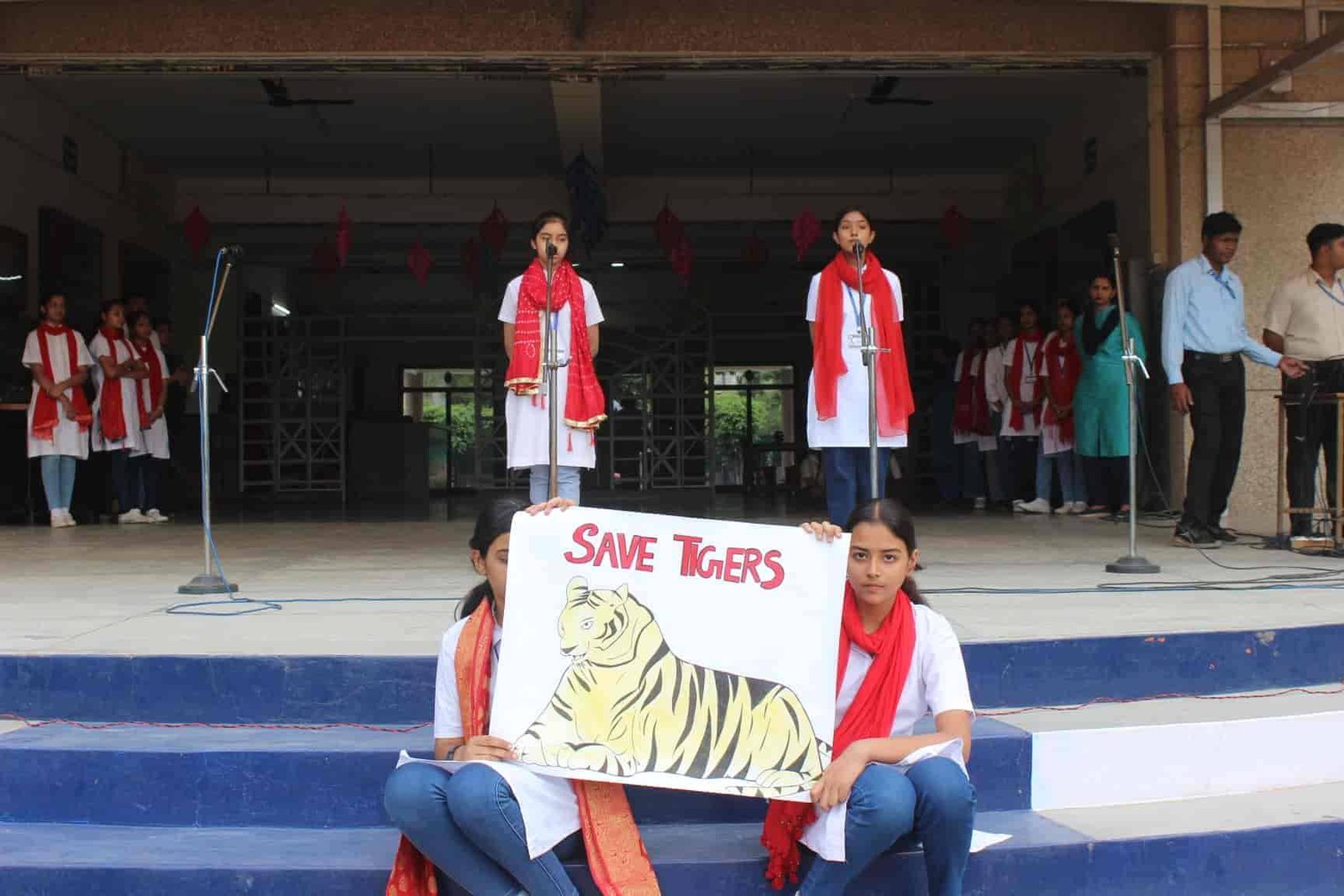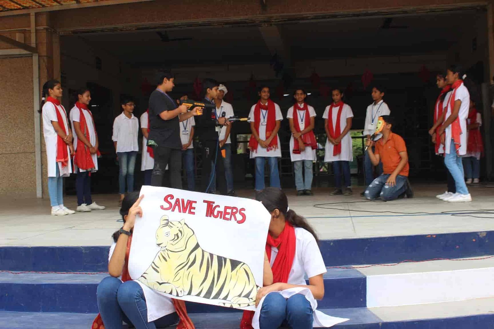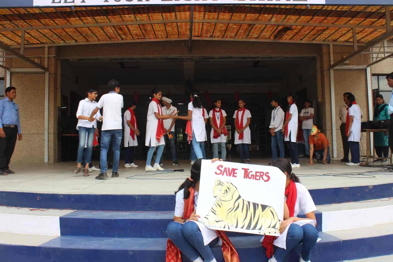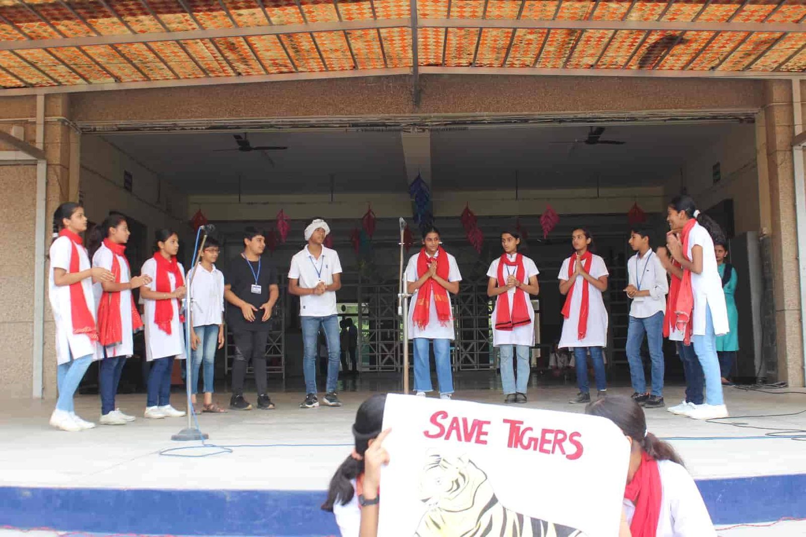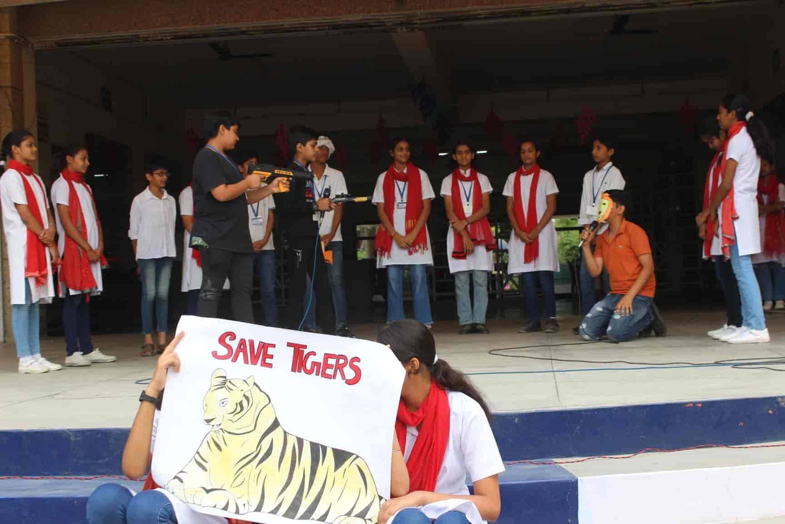 " SAVE TIGERS " The Morning Assembly on 20/04/23 was based on the Sensational Topic " Don't Stripes The Stripes from Scenenary Save Tigers" This issue holds great importance in present context . It was beautifully portrayed by students of VIII Q in the form of a meaningful Nukkad Natak and Poem . The Assembly also threw light on the measures that can be adopted to Save Tigers.