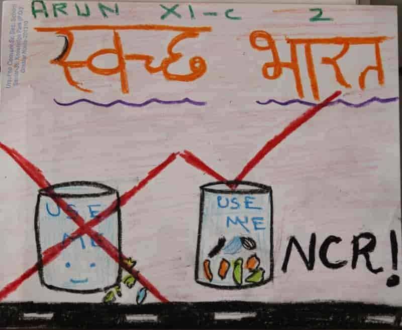 GANDHI JAYANTI CELEBRATION-2018 Gandhi jayanti was celebrated in the premises of Ursuline Convent Senior Secondary school on 2nd Oct 2018. With due regard to Gandhiji?s ideals, the school enthused in the students the spirit of simple living and high thinking. This made them aware of their responsibilities for their country and to get actively involved in the ?SWACHH BHARAT ABHIYAN?. The students took the initiative to clean the school neighbourhood. Some activities like painting competition and essay writing were held to make children aware of the importance of this day.
