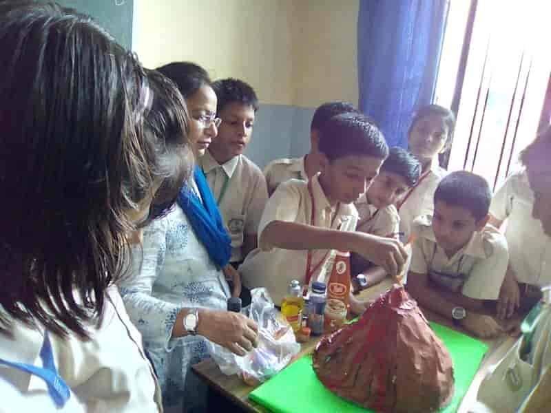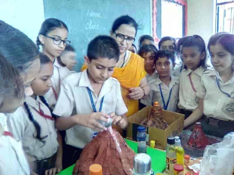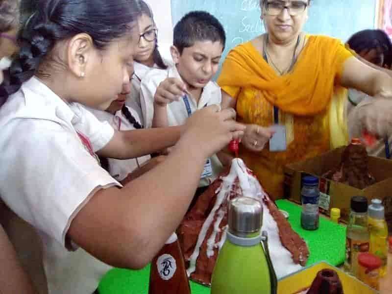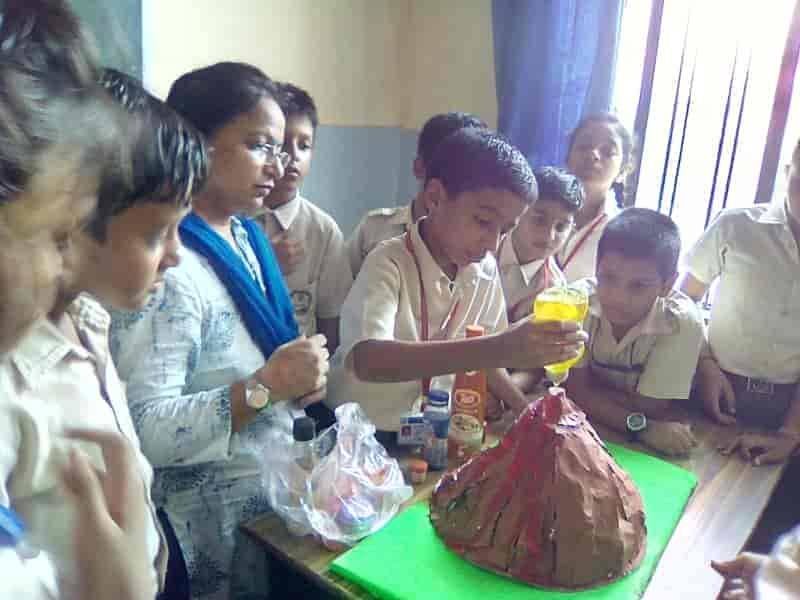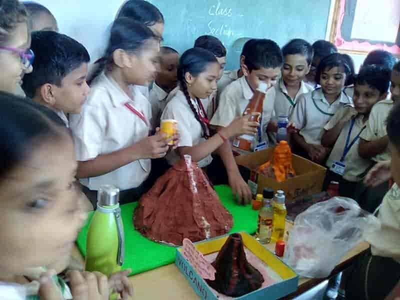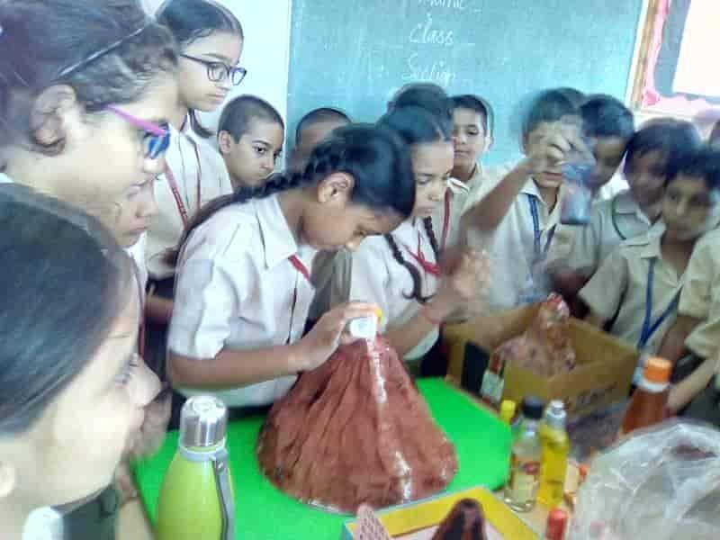An activity was done by Class V students in the science period. They were given a task to make a model of volcano on the summer holidays. On 10th July'19, the working of volcano (eruption of lava) was showed by the science teachers to the students. They were enthusiastic about the concept. Activity : Making the volcano erupt Things needed : 1. A model of volcano 2. Vinegar 3. Liquid soap 4. Sodium Bicarbonate Method : 1. Add red food colouring to the vinegar. This makes your lova red, like the real red hot lava in a volcano. 2. Using the funnel half fill the bottle with sodium bicarbonate.Then stand the bottle upright in the middle of the dish. 3. Quickly pour some red vinegar into the bottle and watch the volcano erupt