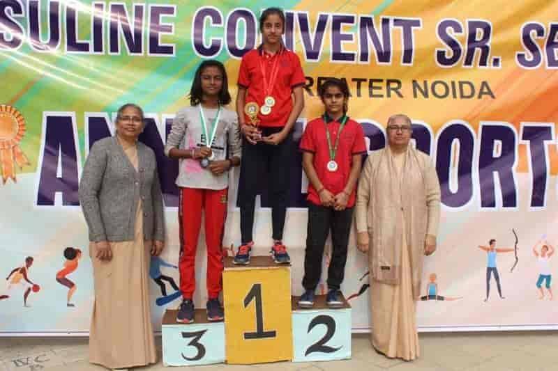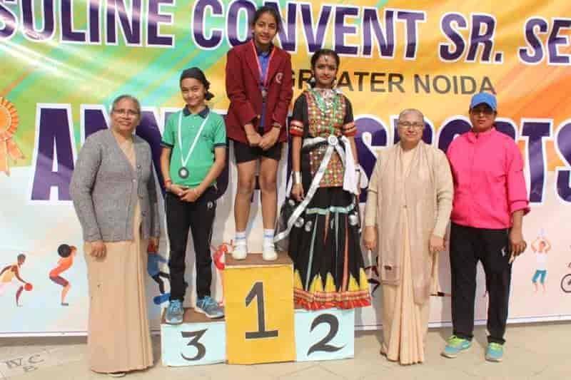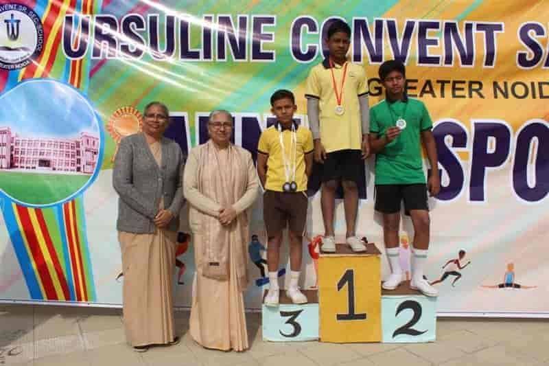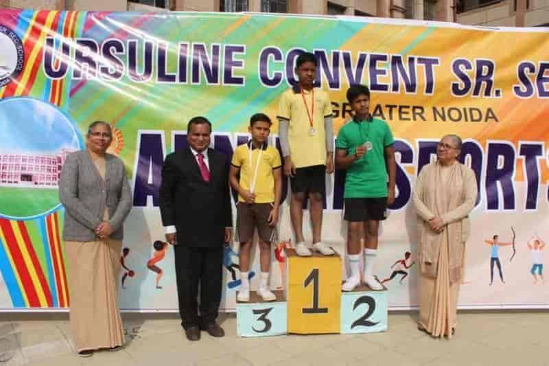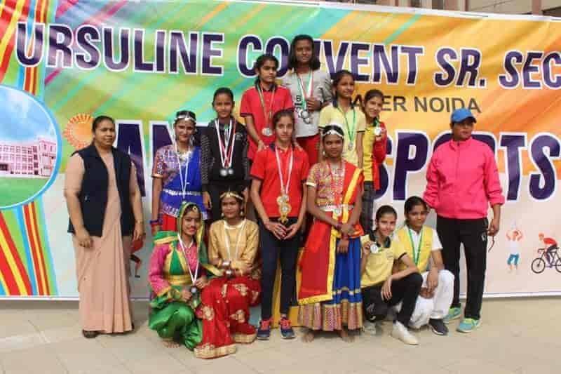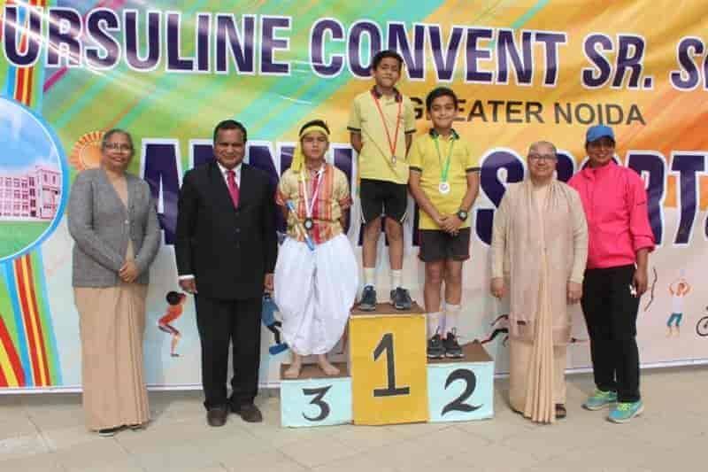 Sports Day 2019-20 Today (04-Dec-2019) Ursuline Convent Sr. Sec. School witnessed its Grand Red Letter Day i.e. Annual Sports Day 2019-20. The event was marked by the benign presence of very eminent Chief Guests like Mrs. Gunja Singh (S.D.M Jewar, Gr. Noida) Mr. Gajanan Mali (Founder parichowk.com) and Guest of Honour Rev. Sr. Nirupa (Provincial Superior, President of Education Society of UMI). It was concluded in two days, Both the days had an array of different races and field events. It was followed by the radiance of multi cultural and multifaceted events like Yoga, Martial Arts and different regional dances.