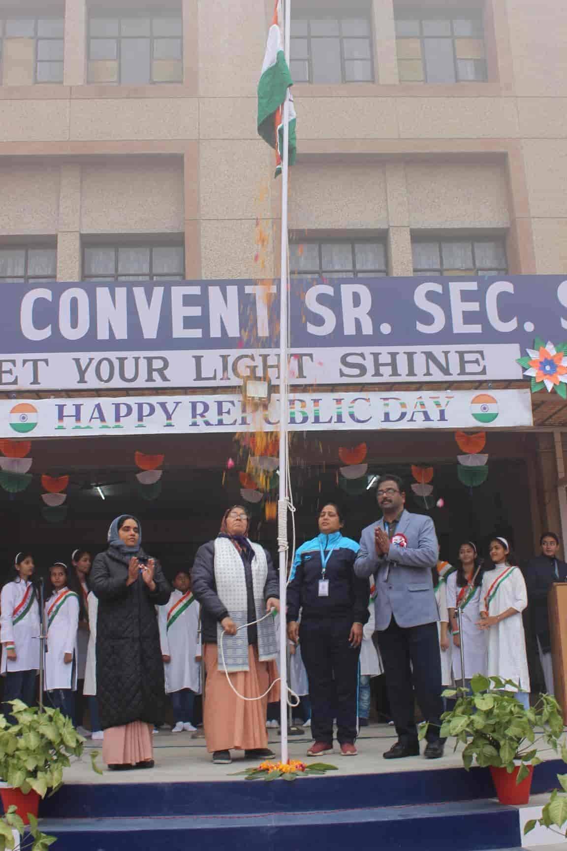 Ursuline Convent School celebrated 75th Republic Day today with great pomp and show. Our nation celebrates its 75th Republic day today i.e. 26th January 2024 with the themes of 'Viksit Bharat' and 'Bharat - Loktantra ki Matruka the parade will be women-centric. The program started with the unfurling of the national flag by the honorable chief guest Mr.Santosh kumar along with the School Manager Rev. Sr. Thelma and School Principal Sr.Rekha. The Choir sang a melodious patriotic song .The students beautifully danced and portrayed the theme so well. The Culmination of the program was by the speech given by the Principal.Sr Rekha gave a strong message about the day. It was an amazing show put up by the Ursuliners.