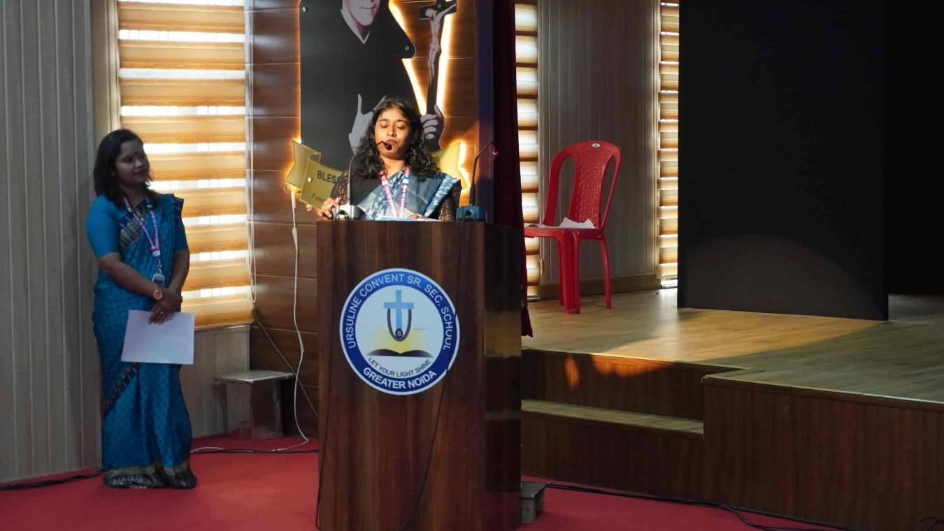 Honing the Art of Communication: Teacher Orientation Program Effective communication is the cornerstone of successful teaching. Recognizing this, the school hosted a dynamic orientation program on Communication Skills for its faculty on 28th June 2024. The program aimed to equip teachers with the latest communication strategies to enhance their interactions with students, parents, and colleagues. The program featured Mr Samudro Bagchi, a renowned expert in communication skills training. Mr Samudro Bagchi captivated the audience with his engaging presentation, which delved into topics such as: Active Listening: Techniques to truly understand student perspectives and concerns. Clear and Concise Communication: Delivering instructions and information effectively. Positive Reinforcement: Fostering a motivating and encouraging classroom environment. Building Rapport: Strategies for establishing trust and positive relationships with students. Ursuline Convent Sr Sec School believes that by investing in the professional development of its teachers, it fosters a learning environment that is not only academically enriching but also emotionally supportive. This commitment to communication excellence empowers teachers to become more effective educators and mentors for their students. Empowered with more effective communication, the faculty is well-equipped to create an enriching learning environment for all students.