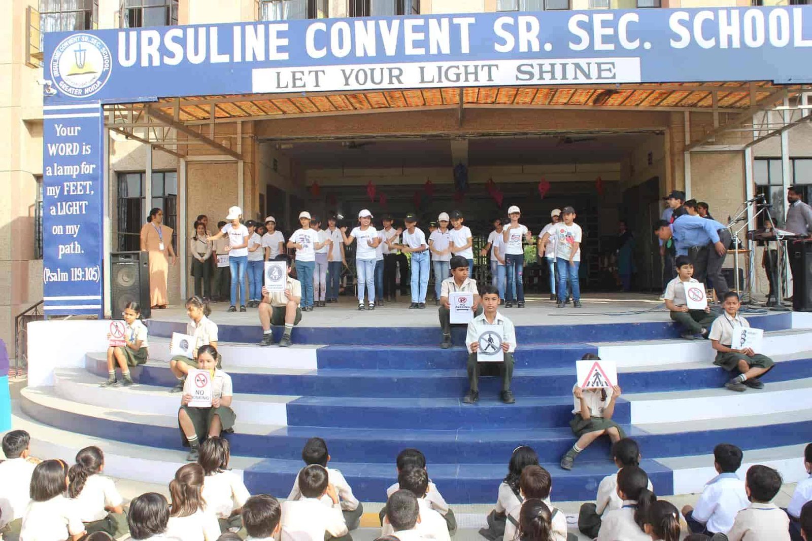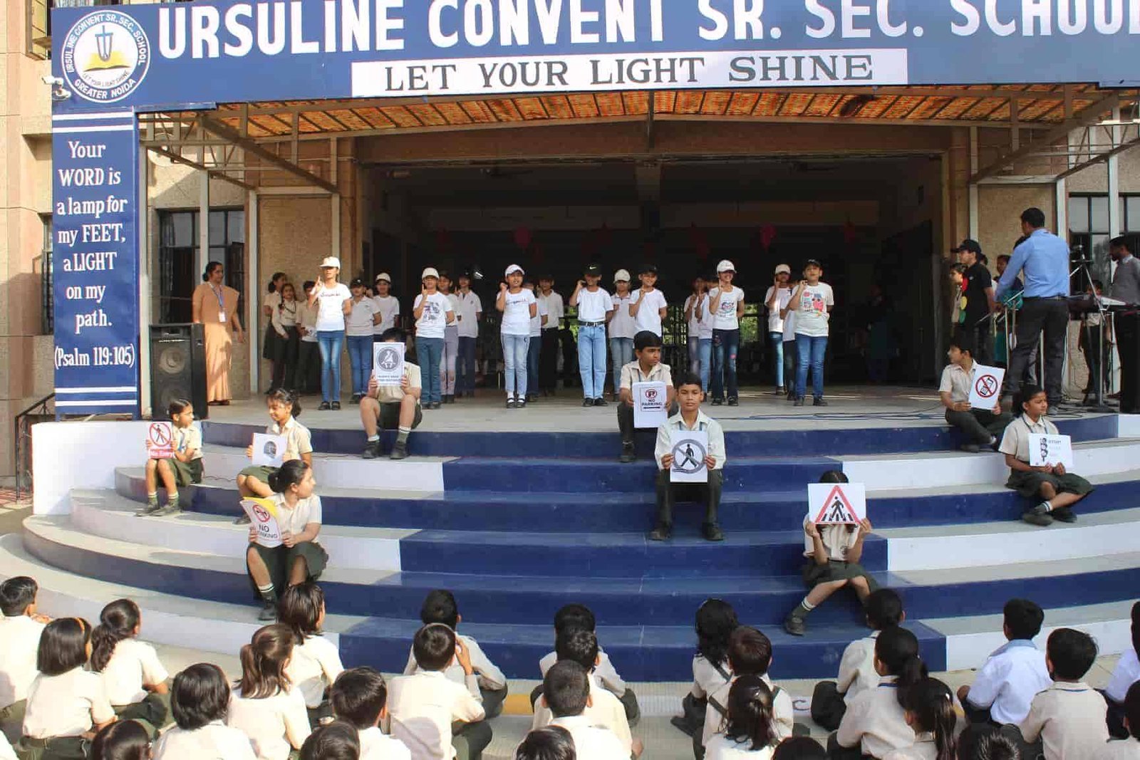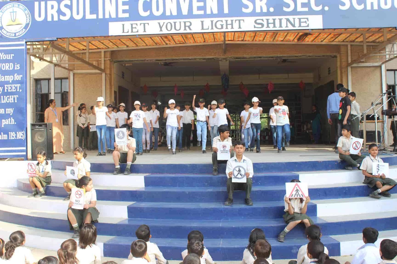 "Safety is a small investment for a rich future. " Class V R presented an assembly on Road Safety. It was a platform wherein the students explained the importance of safety rules. The symbols related to road safety was explained through enactment. An action song depicting on road safety was the center of attraction. The assembly concluded with a brief interactive session on road safety by the Principal Rev. Sr. Rekha.
