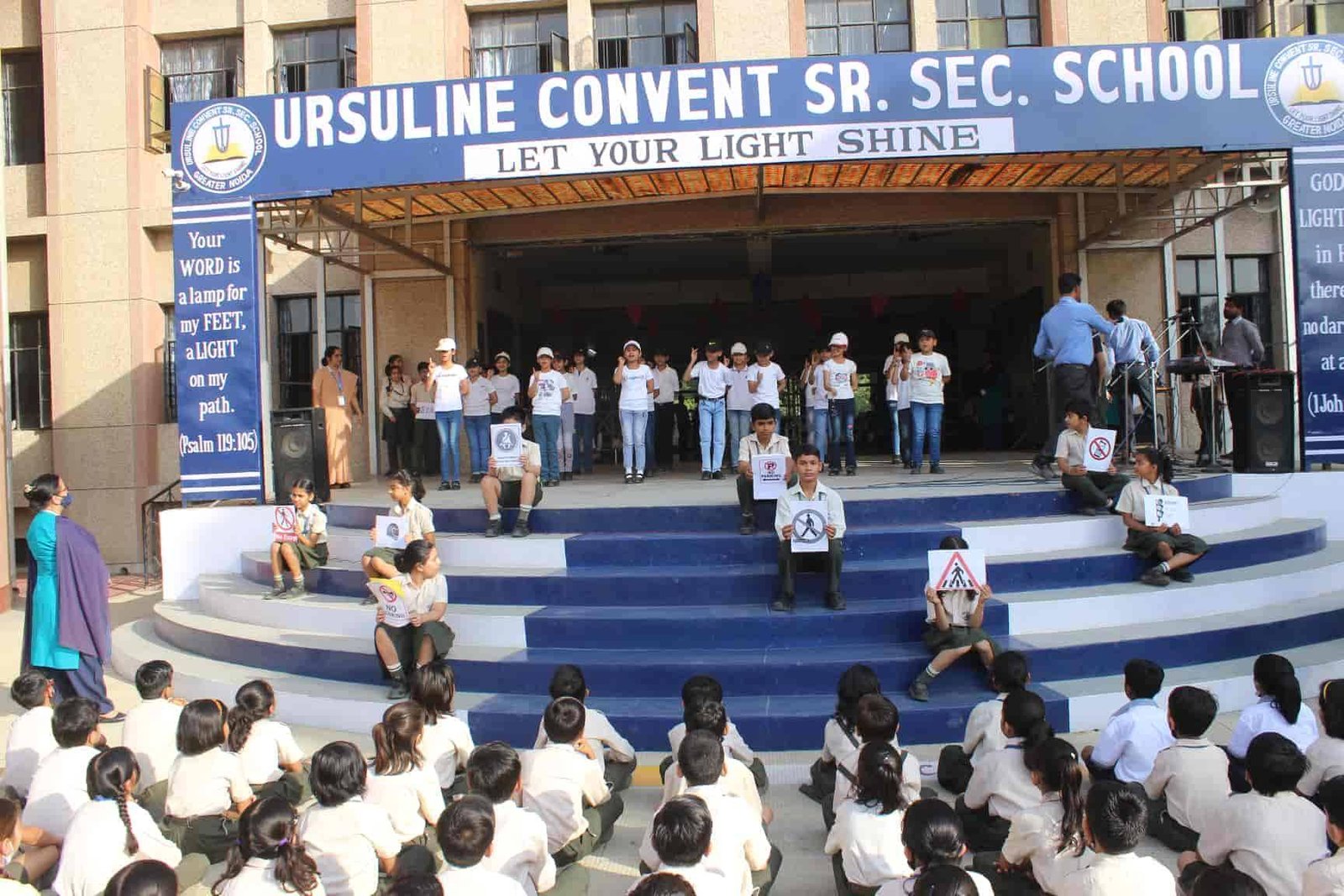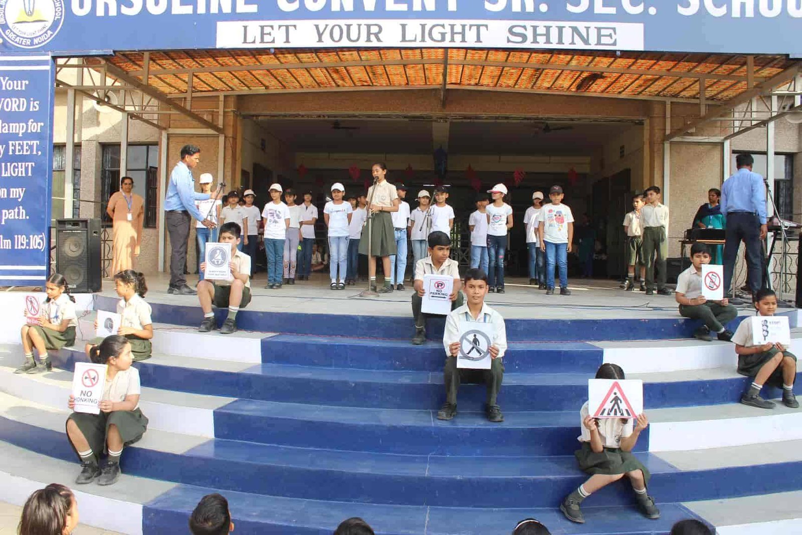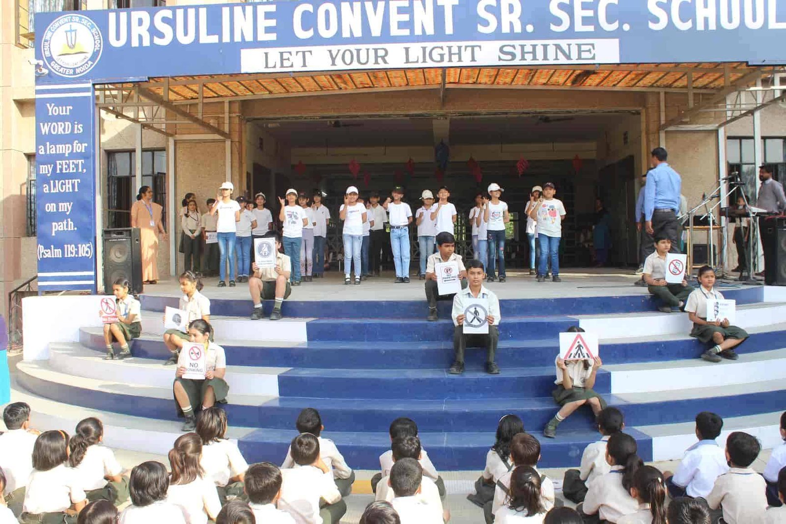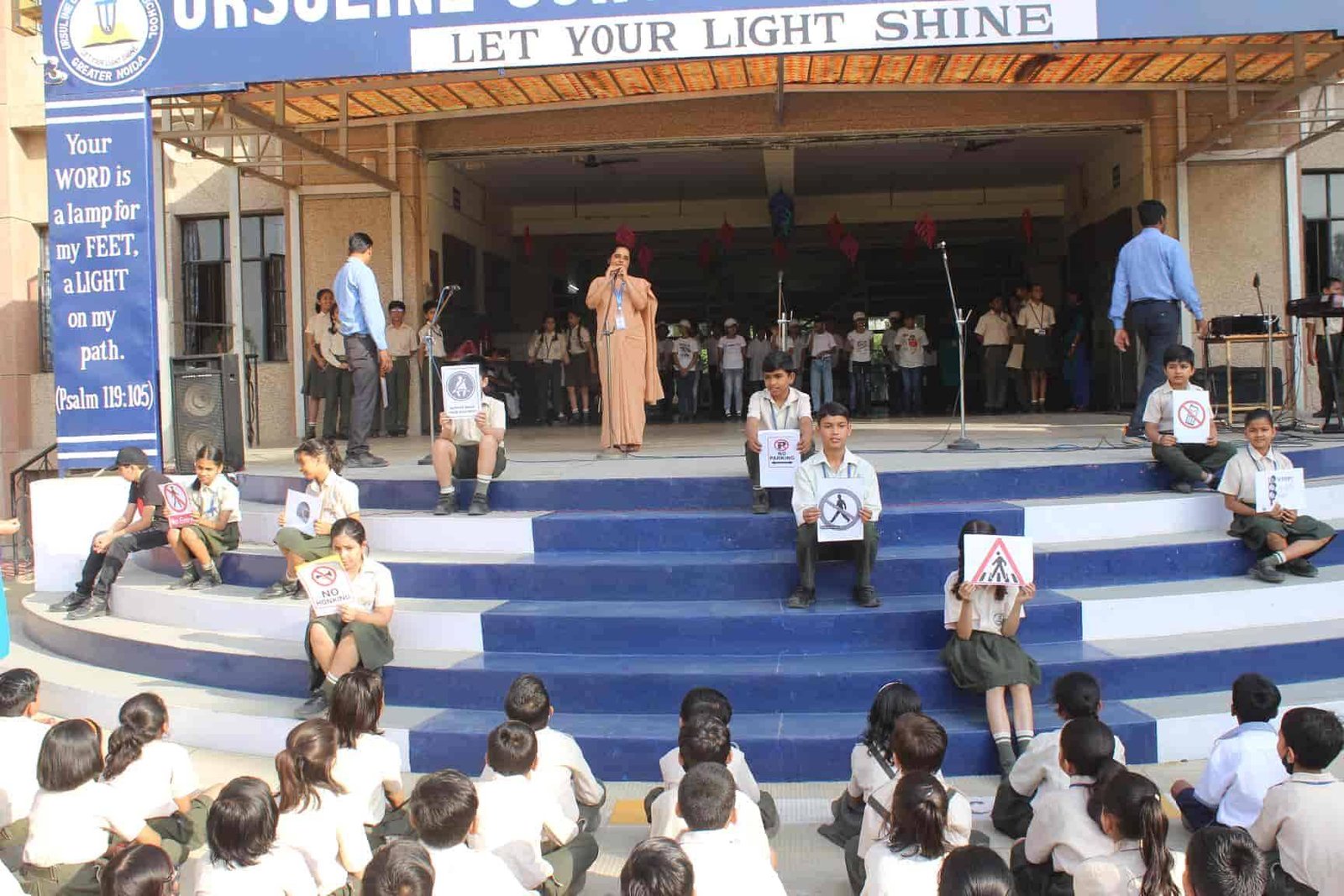 "Safety is a small investment for a rich future. " Class V R presented an assembly on Road Safety. It was a platform wherein the students explained the importance of safety rules. The symbols related to road safety was explained through enactment. An action song depicting on road safety was the center of attraction. The assembly concluded with a brief interactive session on road safety by the Principal Rev. Sr. Rekha.
