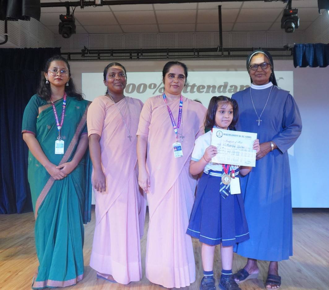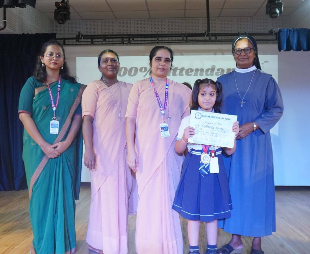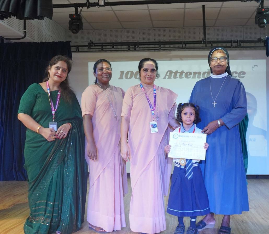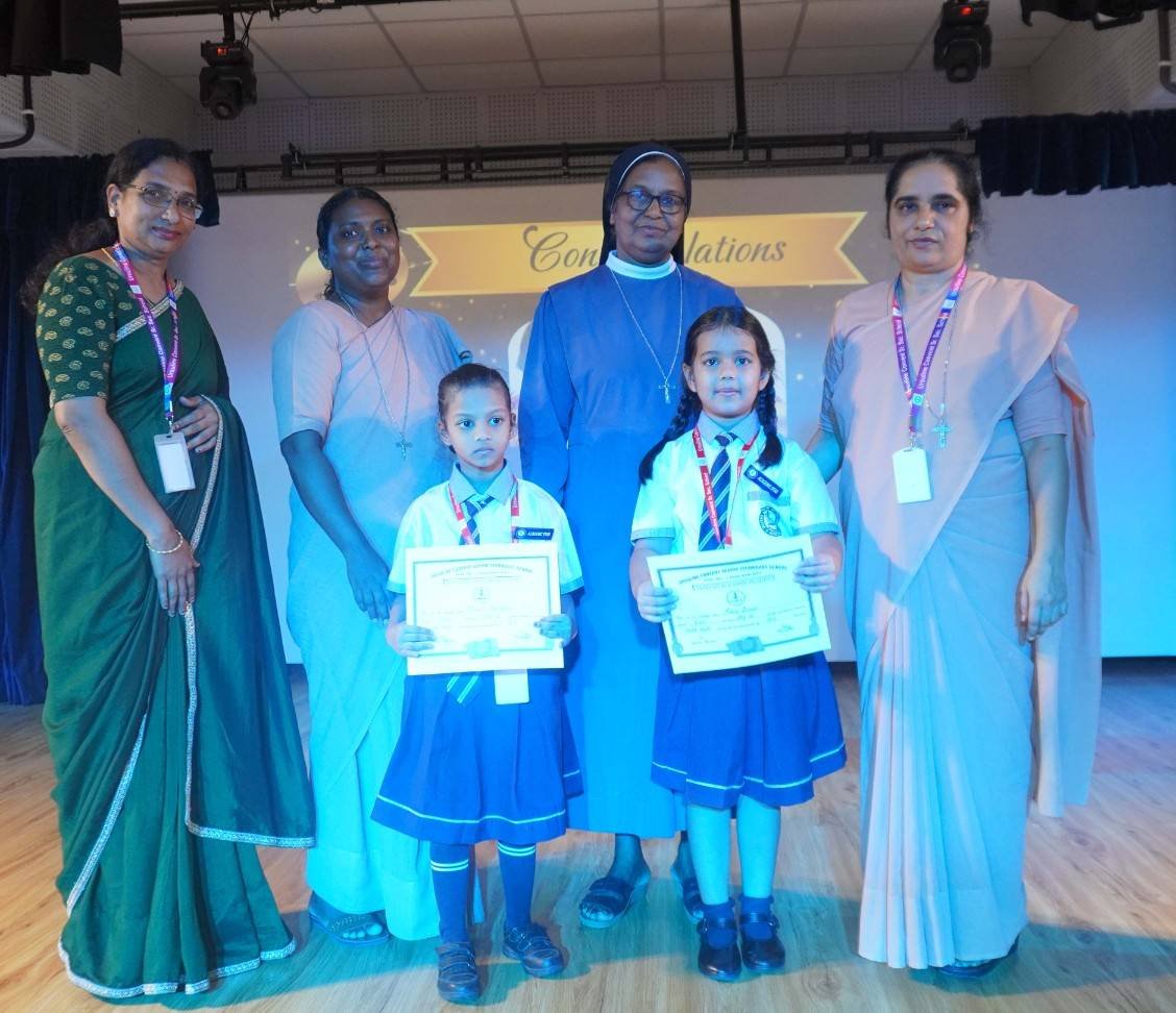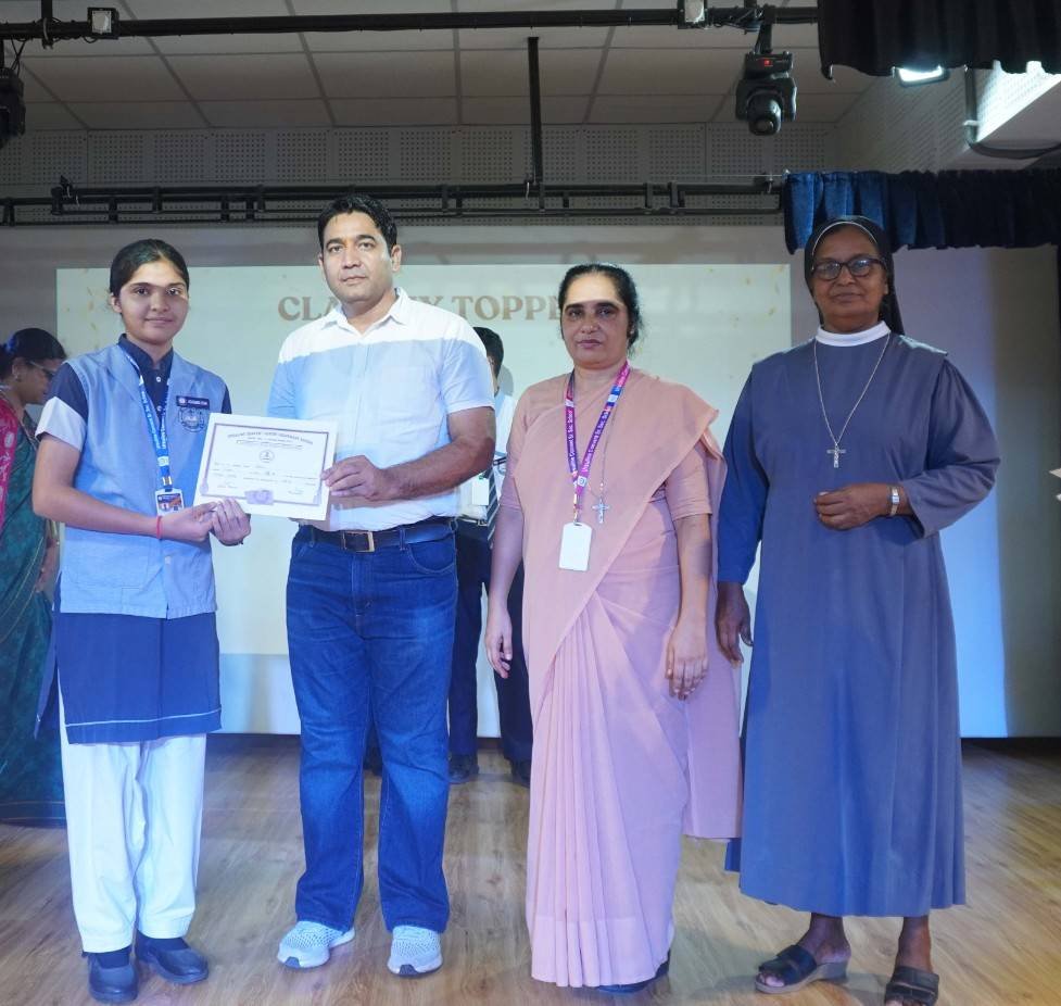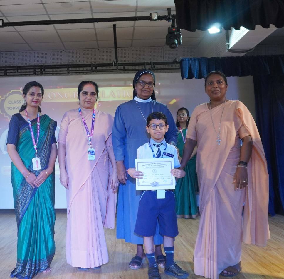 “A Celebration of Dreams, Dedication, and Deep Pride” “Success is not just about what you accomplish in life, but what you inspire others to do.” Our Valedictory Function echoed this truth in every moment, celebrating not just academic scores, but the spirit, sincerity, and silent perseverance behind them. Students from Nursery to Class XII were part of this proud occasion, the class-wise toppers were honoured for their staunch dedication. A moment of special honour was the presence of our Chief Guests, Mr. Devender and Mrs. Hemlata Bansal, proud parents of Mihir Bansal. The ceremony glowed brighter as we celebrated our school toppers—Mihir Bansal of Class XII, who achieved a remarkable 98.8%, and Yugank of Class X, who stood tall with an extraordinary 99%. These names were more than just figures of merit; they were stories of grit, consistency, and quiet brilliance. Adding to the spirit of gratitude, the teachers of Classes X and XII, whose students scored a perfect 100% in individual subjects, were also felicitated—honouring the guiding hands behind every shining child. The awards were graciously presented by Reverend Sister Anu George, our School Manager; Reverend Sister Rekha, our Principal; and Sister Mamitha, our devoted Office Administrator. More than a ceremony, it was a reflection of the school’s soul—where potential is nurtured, dreams are ignited, and every milestone becomes a memory.