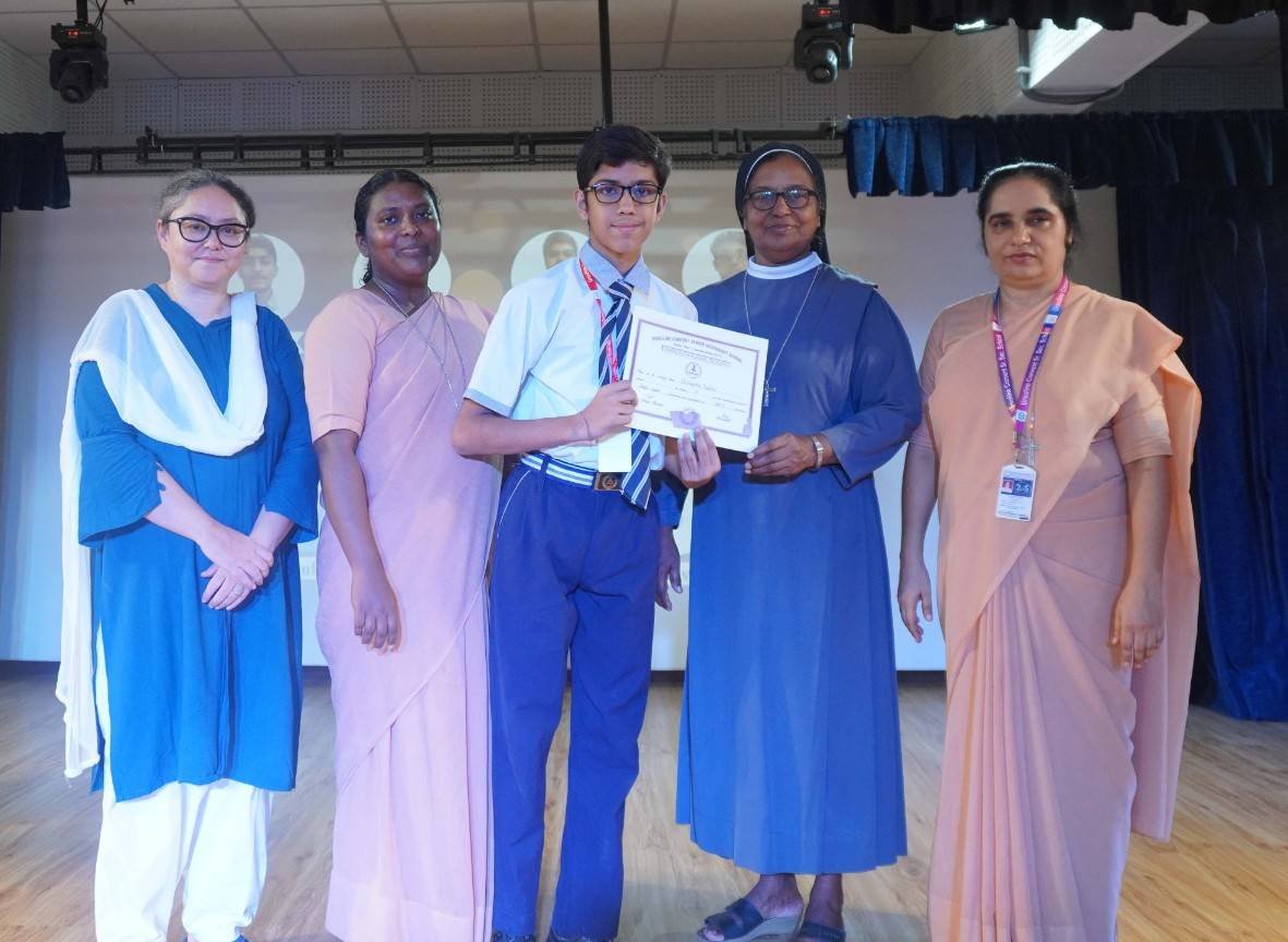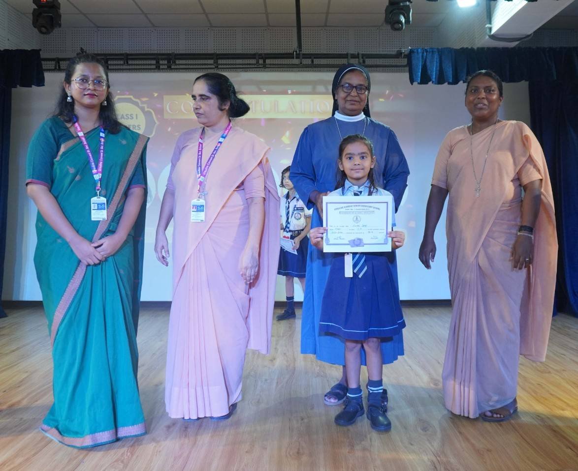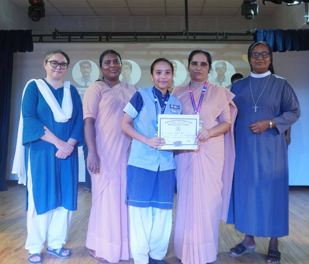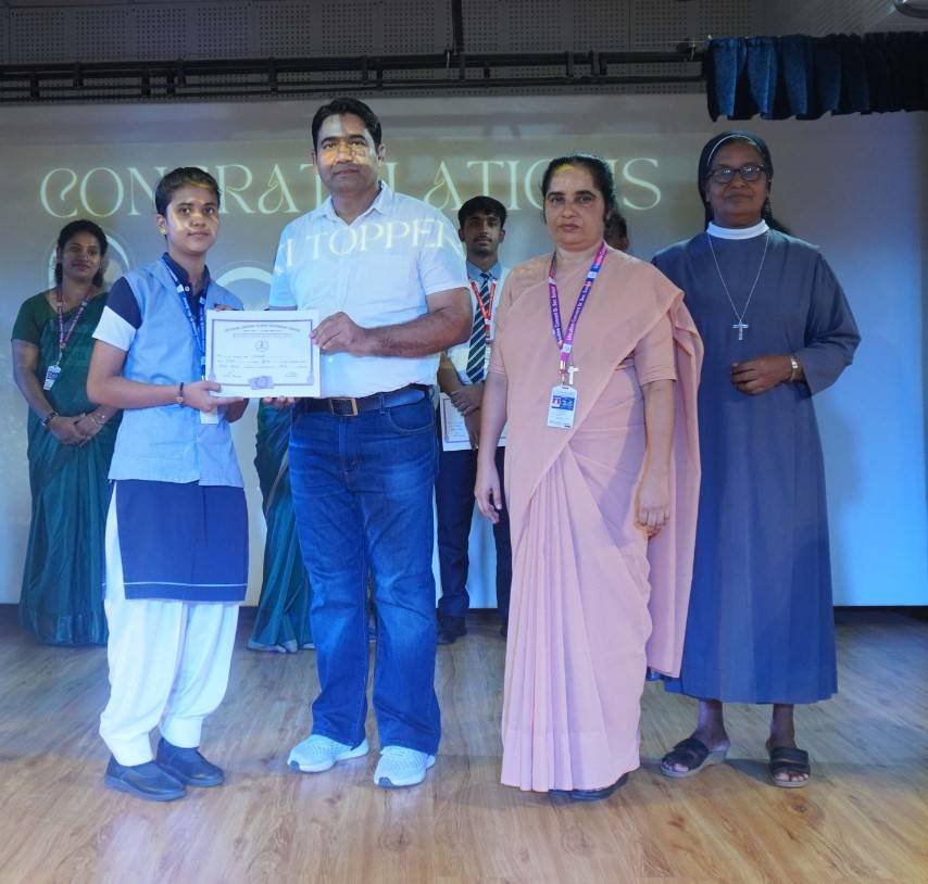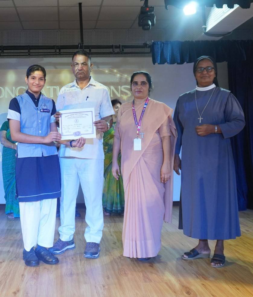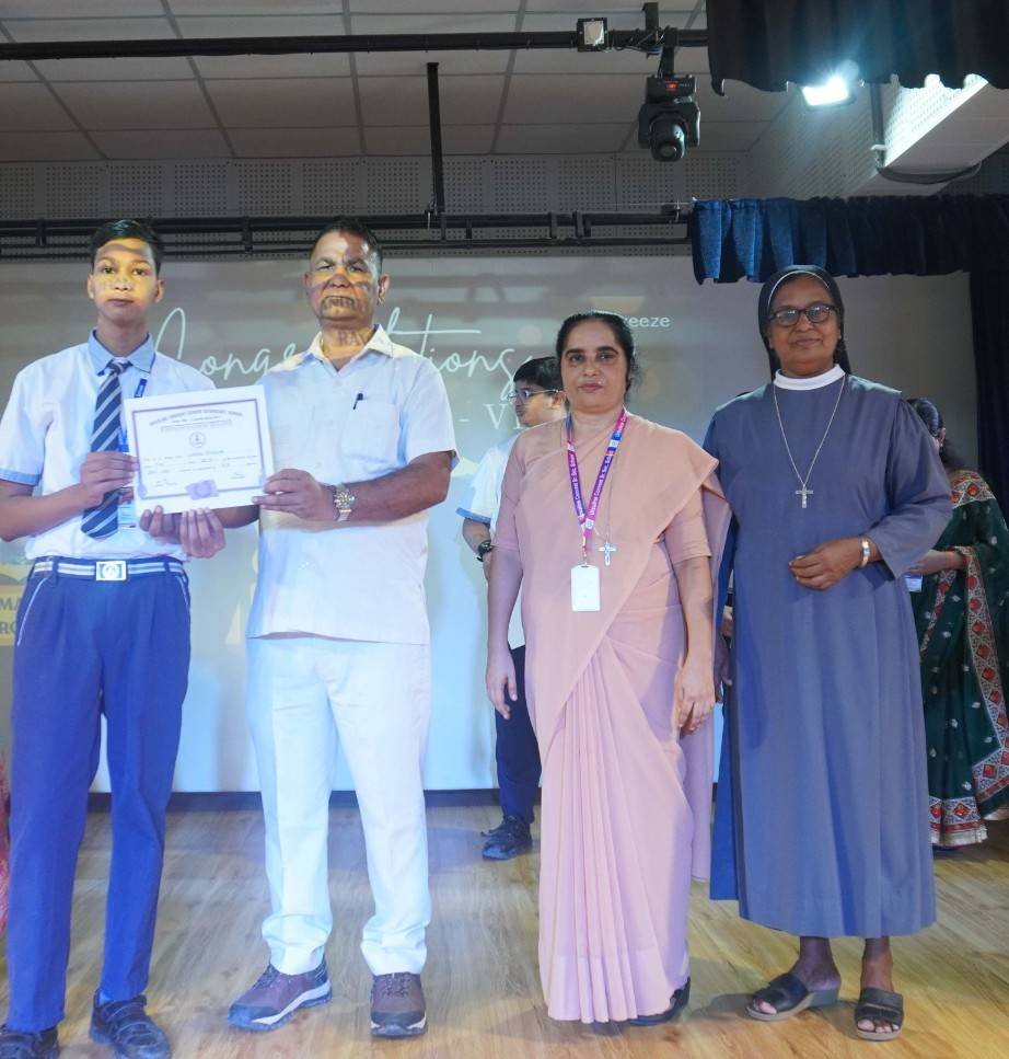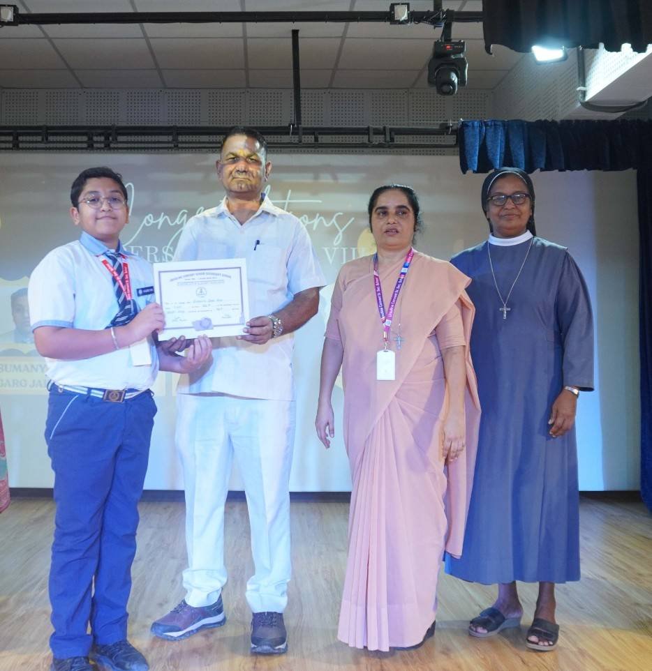 “A Celebration of Dreams, Dedication, and Deep Pride” “Success is not just about what you accomplish in life, but what you inspire others to do.” Our Valedictory Function echoed this truth in every moment, celebrating not just academic scores, but the spirit, sincerity, and silent perseverance behind them. Students from Nursery to Class XII were part of this proud occasion, the class-wise toppers were honoured for their staunch dedication. A moment of special honour was the presence of our Chief Guests, Mr. Devender and Mrs. Hemlata Bansal, proud parents of Mihir Bansal. The ceremony glowed brighter as we celebrated our school toppers—Mihir Bansal of Class XII, who achieved a remarkable 98.8%, and Yugank of Class X, who stood tall with an extraordinary 99%. These names were more than just figures of merit; they were stories of grit, consistency, and quiet brilliance. Adding to the spirit of gratitude, the teachers of Classes X and XII, whose students scored a perfect 100% in individual subjects, were also felicitated—honouring the guiding hands behind every shining child. The awards were graciously presented by Reverend Sister Anu George, our School Manager; Reverend Sister Rekha, our Principal; and Sister Mamitha, our devoted Office Administrator. More than a ceremony, it was a reflection of the school’s soul—where potential is nurtured, dreams are ignited, and every milestone becomes a memory.