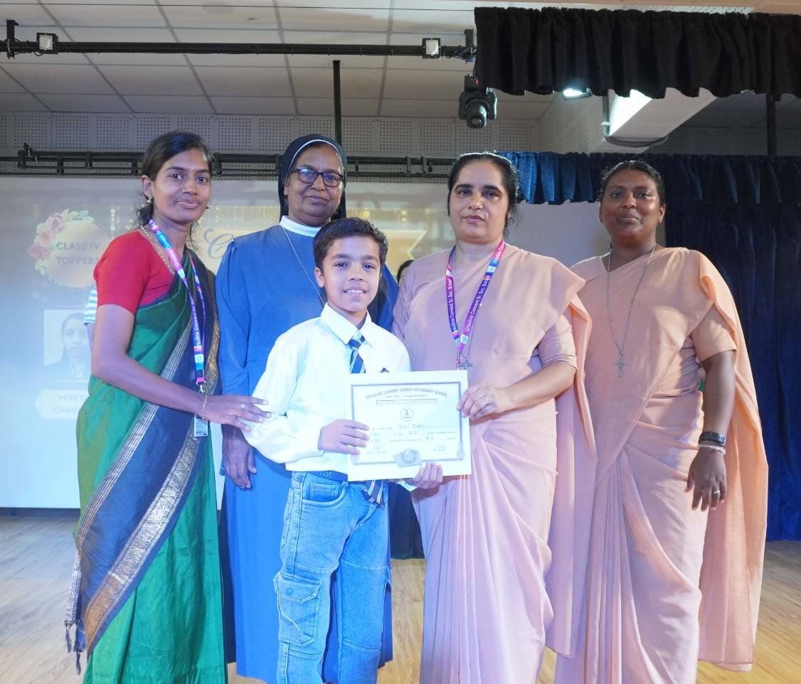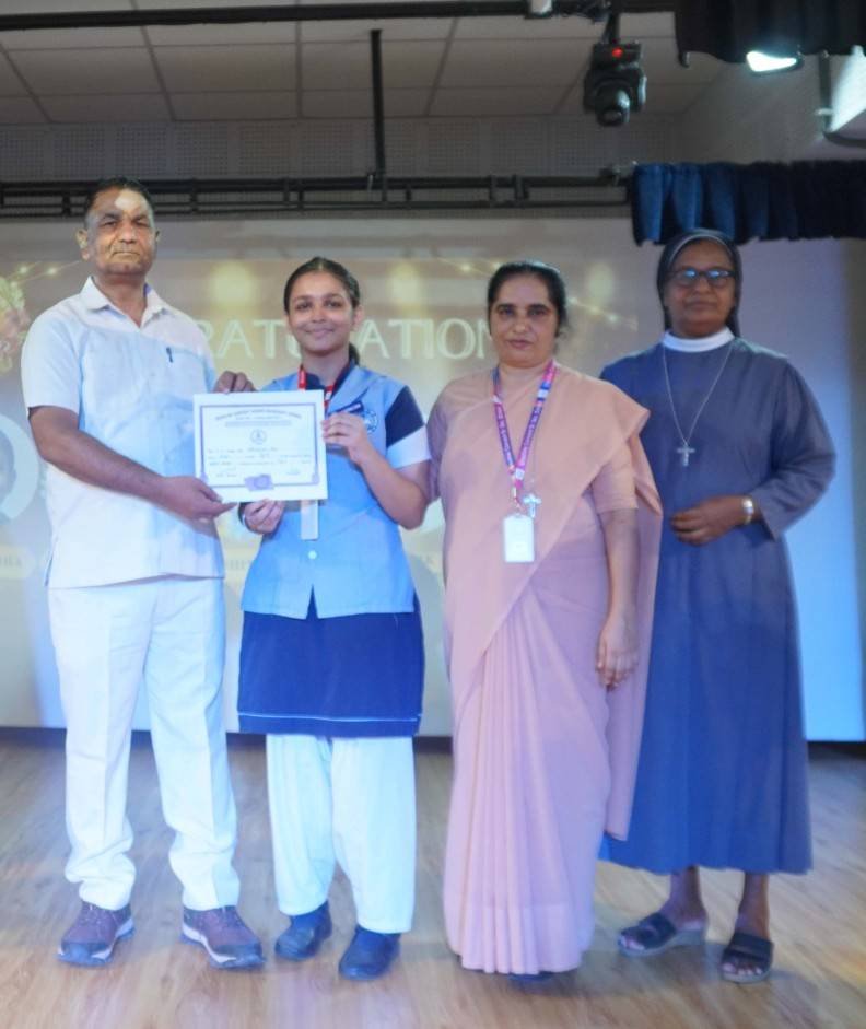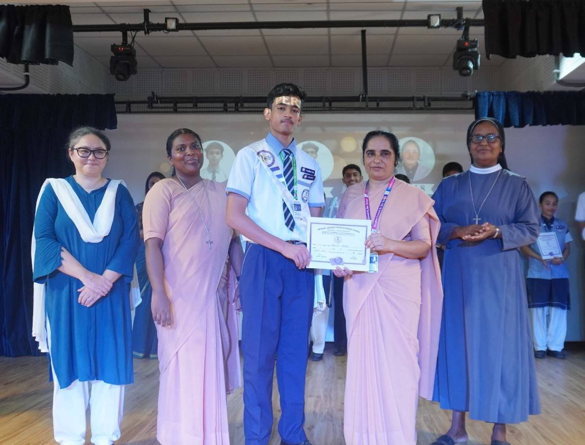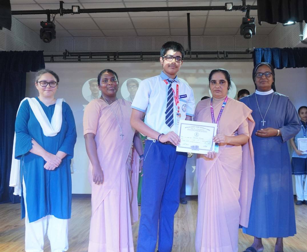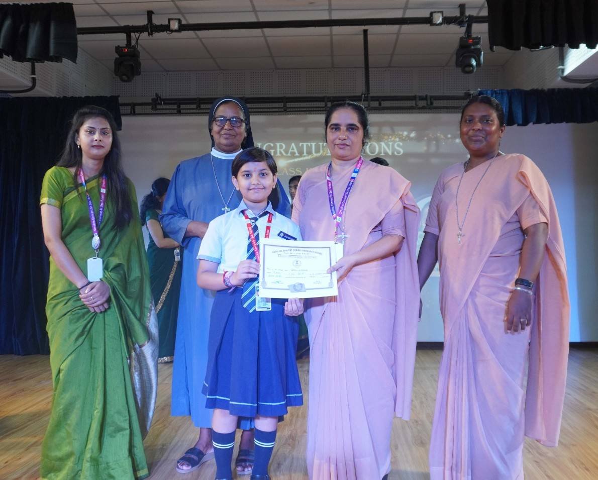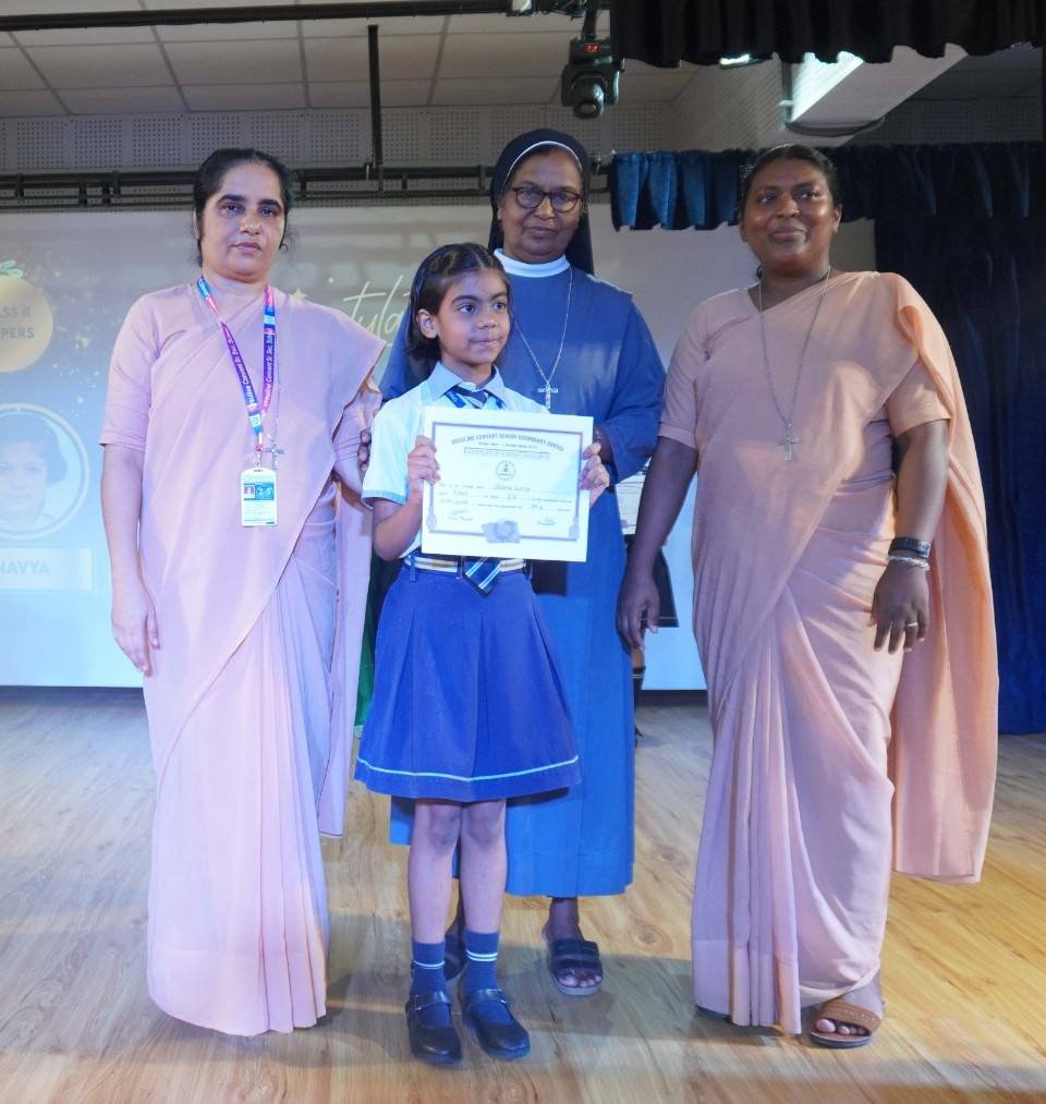 “A Celebration of Dreams, Dedication, and Deep Pride” “Success is not just about what you accomplish in life, but what you inspire others to do.” Our Valedictory Function echoed this truth in every moment, celebrating not just academic scores, but the spirit, sincerity, and silent perseverance behind them. Students from Nursery to Class XII were part of this proud occasion, the class-wise toppers were honoured for their staunch dedication. A moment of special honour was the presence of our Chief Guests, Mr. Devender and Mrs. Hemlata Bansal, proud parents of Mihir Bansal. The ceremony glowed brighter as we celebrated our school toppers—Mihir Bansal of Class XII, who achieved a remarkable 98.8%, and Yugank of Class X, who stood tall with an extraordinary 99%. These names were more than just figures of merit; they were stories of grit, consistency, and quiet brilliance. Adding to the spirit of gratitude, the teachers of Classes X and XII, whose students scored a perfect 100% in individual subjects, were also felicitated—honouring the guiding hands behind every shining child. The awards were graciously presented by Reverend Sister Anu George, our School Manager; Reverend Sister Rekha, our Principal; and Sister Mamitha, our devoted Office Administrator. More than a ceremony, it was a reflection of the school’s soul—where potential is nurtured, dreams are ignited, and every milestone becomes a memory.