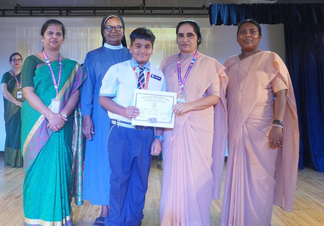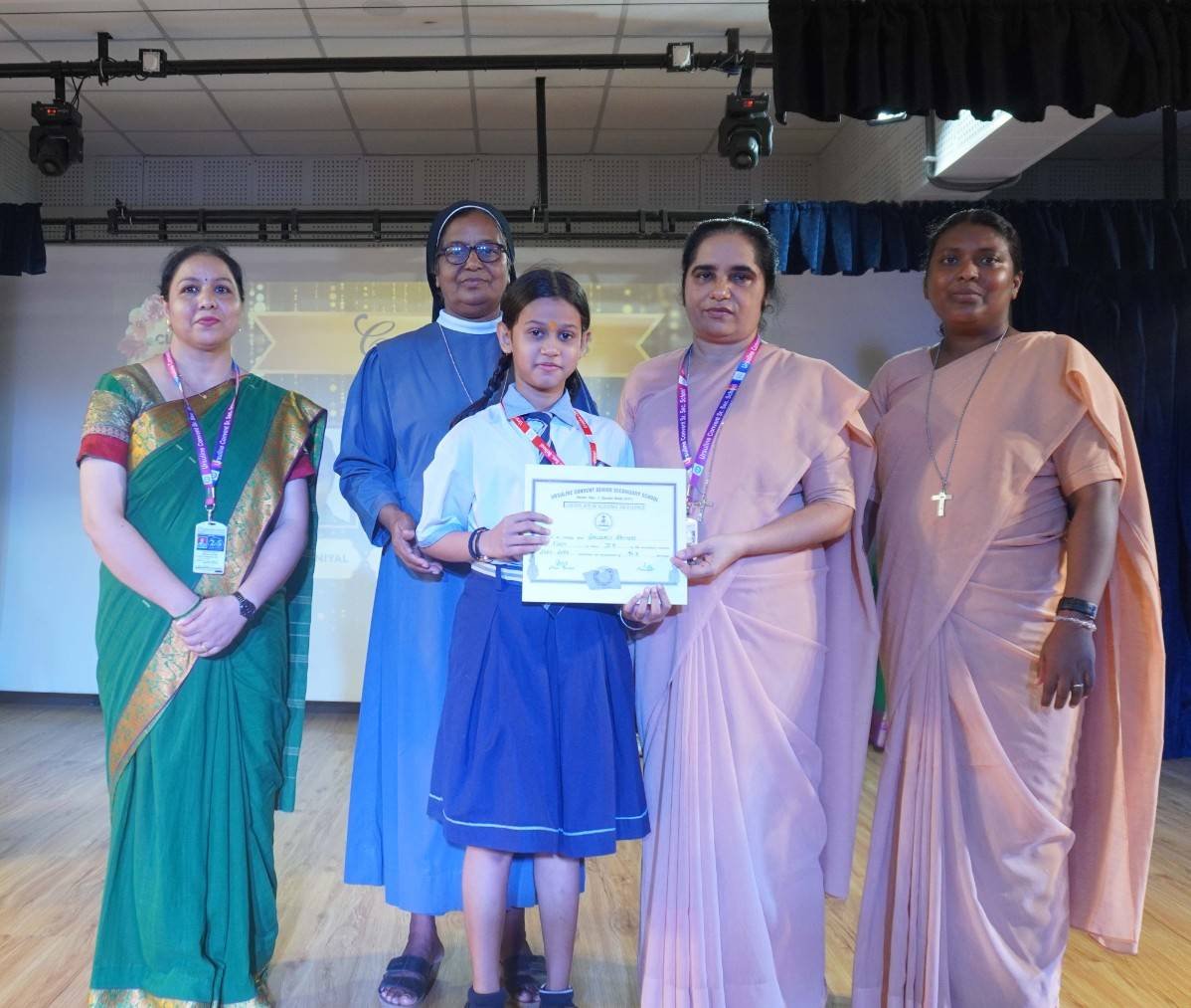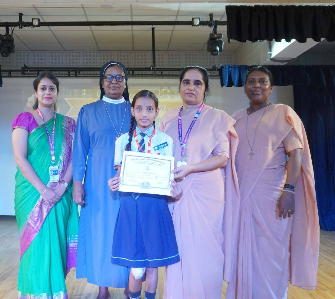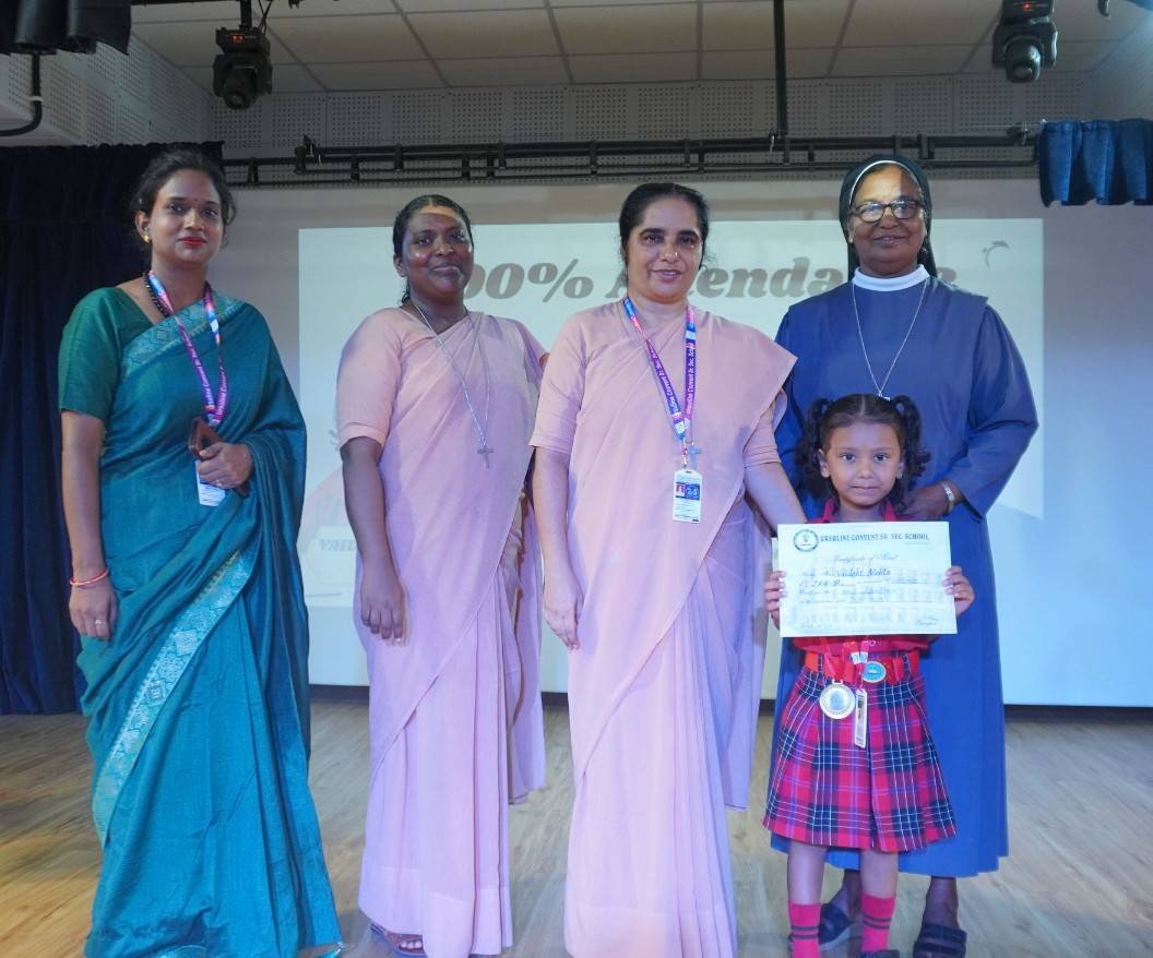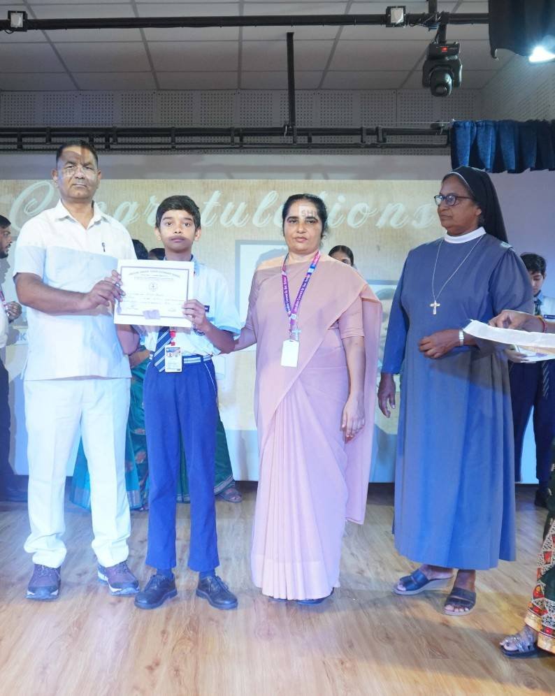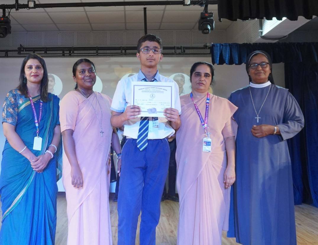 “A Celebration of Dreams, Dedication, and Deep Pride” “Success is not just about what you accomplish in life, but what you inspire others to do.” Our Valedictory Function echoed this truth in every moment, celebrating not just academic scores, but the spirit, sincerity, and silent perseverance behind them. Students from Nursery to Class XII were part of this proud occasion, the class-wise toppers were honoured for their staunch dedication. A moment of special honour was the presence of our Chief Guests, Mr. Devender and Mrs. Hemlata Bansal, proud parents of Mihir Bansal. The ceremony glowed brighter as we celebrated our school toppers—Mihir Bansal of Class XII, who achieved a remarkable 98.8%, and Yugank of Class X, who stood tall with an extraordinary 99%. These names were more than just figures of merit; they were stories of grit, consistency, and quiet brilliance. Adding to the spirit of gratitude, the teachers of Classes X and XII, whose students scored a perfect 100% in individual subjects, were also felicitated—honouring the guiding hands behind every shining child. The awards were graciously presented by Reverend Sister Anu George, our School Manager; Reverend Sister Rekha, our Principal; and Sister Mamitha, our devoted Office Administrator. More than a ceremony, it was a reflection of the school’s soul—where potential is nurtured, dreams are ignited, and every milestone becomes a memory.