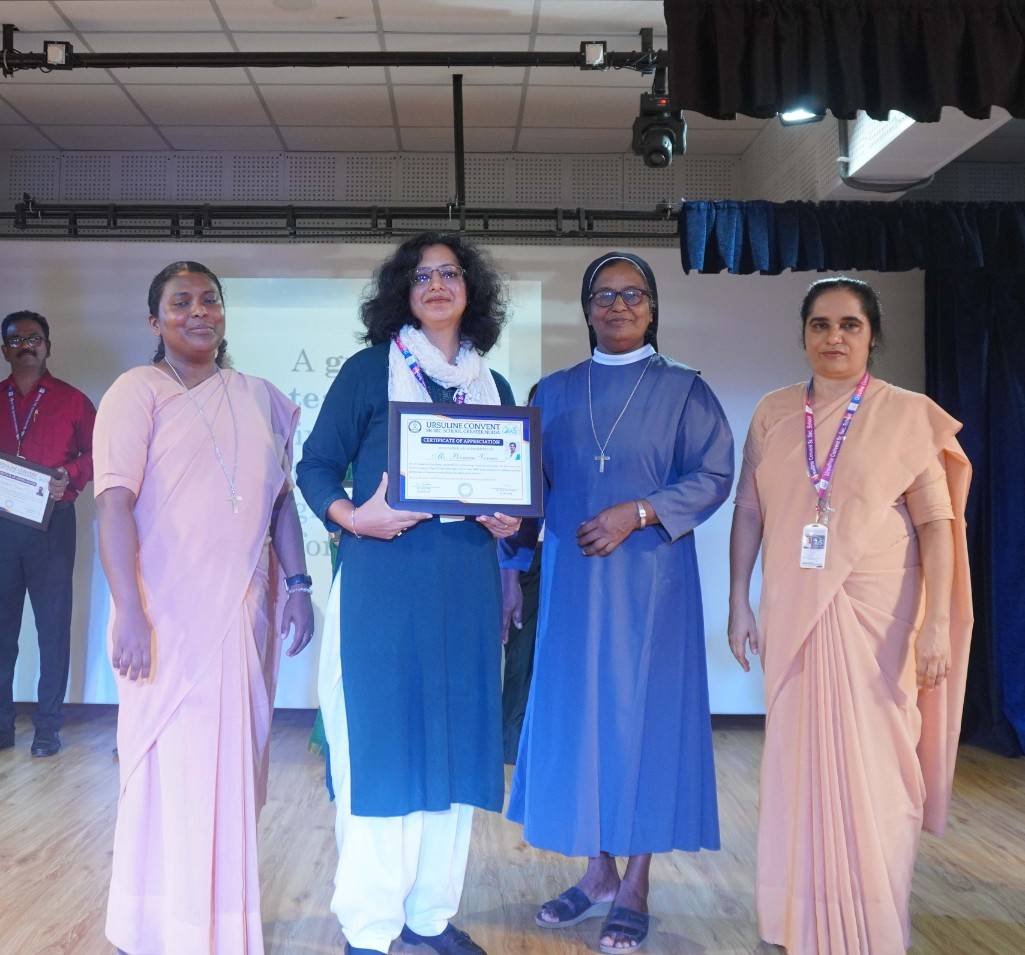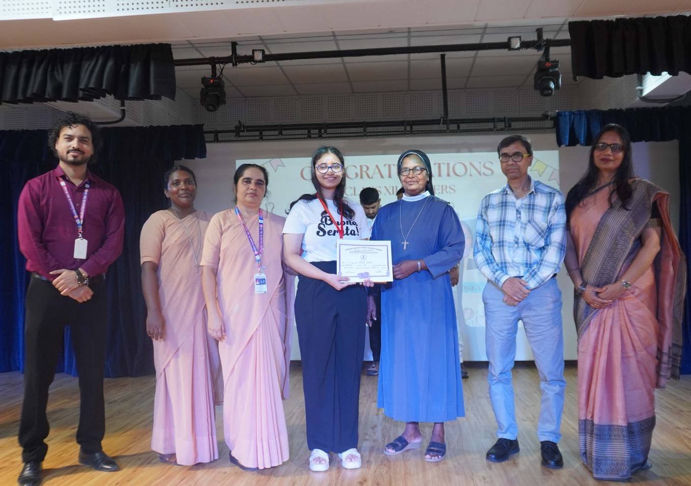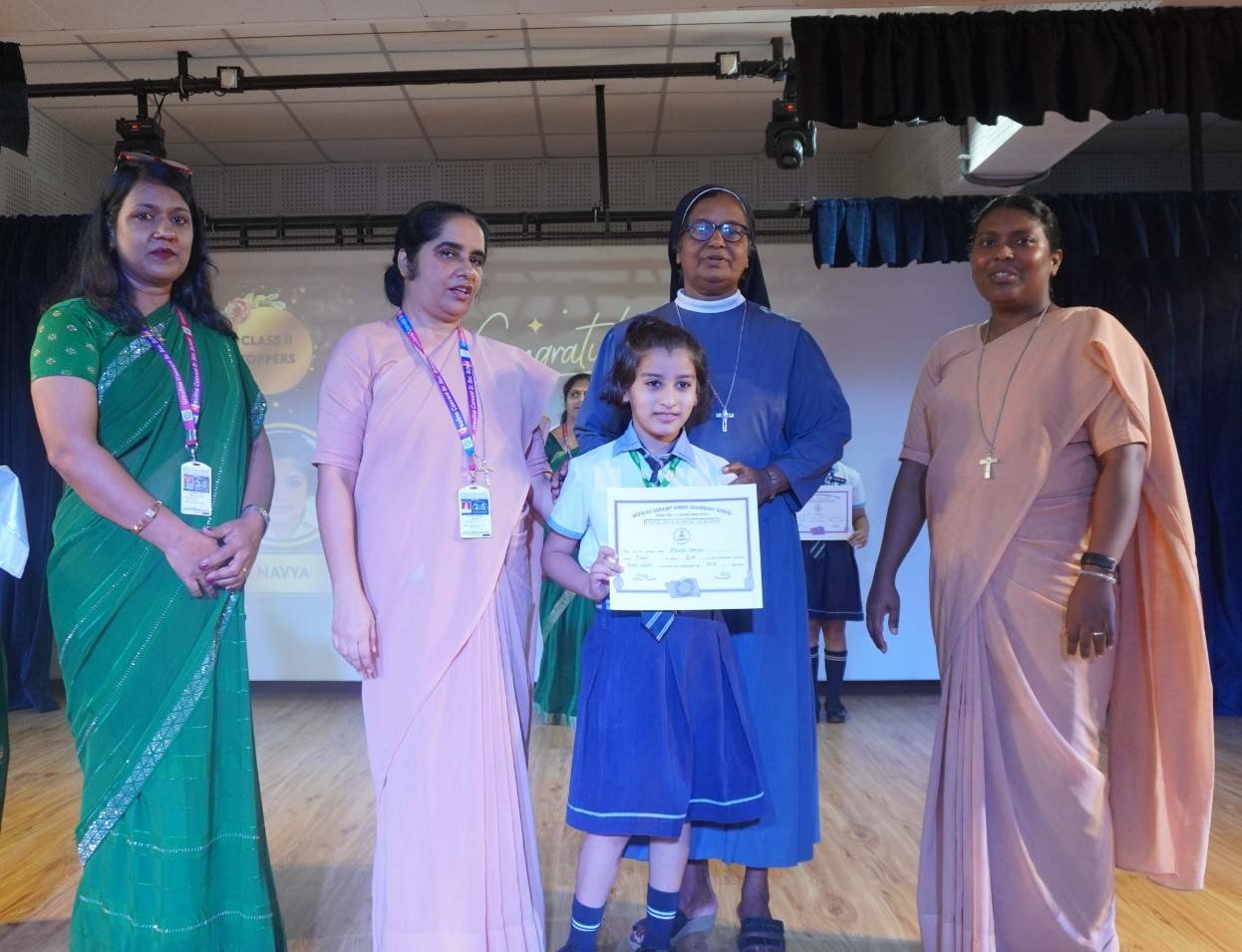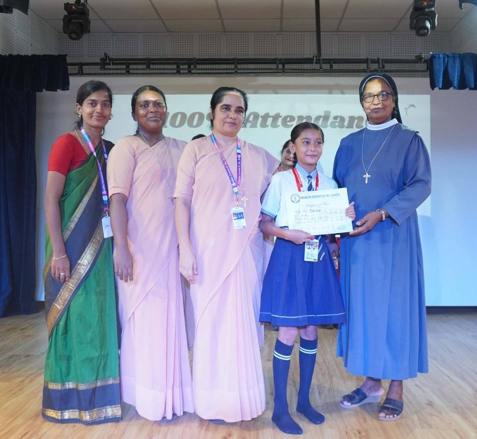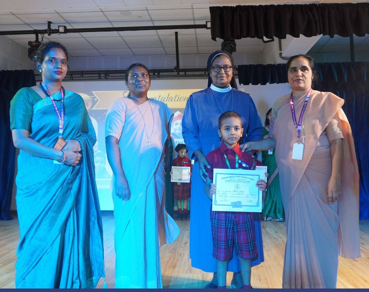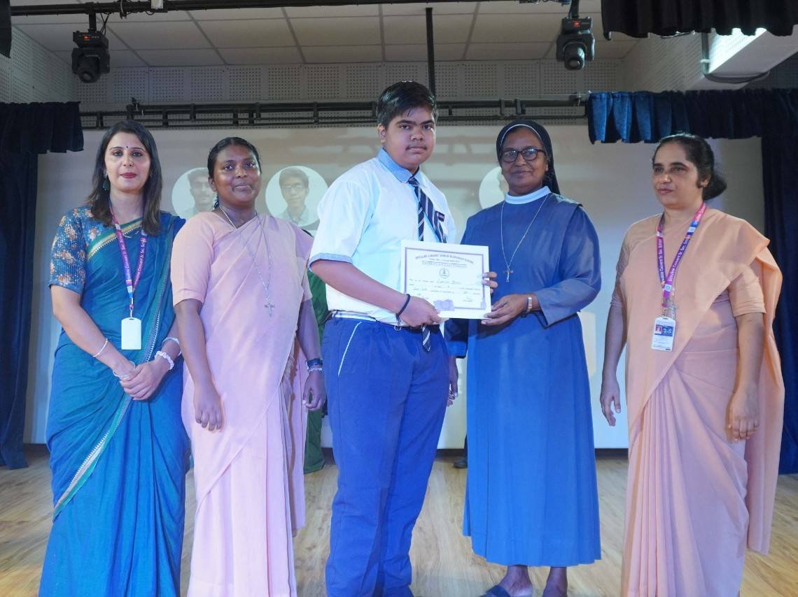 “A Celebration of Dreams, Dedication, and Deep Pride” “Success is not just about what you accomplish in life, but what you inspire others to do.” Our Valedictory Function echoed this truth in every moment, celebrating not just academic scores, but the spirit, sincerity, and silent perseverance behind them. Students from Nursery to Class XII were part of this proud occasion, the class-wise toppers were honoured for their staunch dedication. A moment of special honour was the presence of our Chief Guests, Mr. Devender and Mrs. Hemlata Bansal, proud parents of Mihir Bansal. The ceremony glowed brighter as we celebrated our school toppers—Mihir Bansal of Class XII, who achieved a remarkable 98.8%, and Yugank of Class X, who stood tall with an extraordinary 99%. These names were more than just figures of merit; they were stories of grit, consistency, and quiet brilliance. Adding to the spirit of gratitude, the teachers of Classes X and XII, whose students scored a perfect 100% in individual subjects, were also felicitated—honouring the guiding hands behind every shining child. The awards were graciously presented by Reverend Sister Anu George, our School Manager; Reverend Sister Rekha, our Principal; and Sister Mamitha, our devoted Office Administrator. More than a ceremony, it was a reflection of the school’s soul—where potential is nurtured, dreams are ignited, and every milestone becomes a memory.