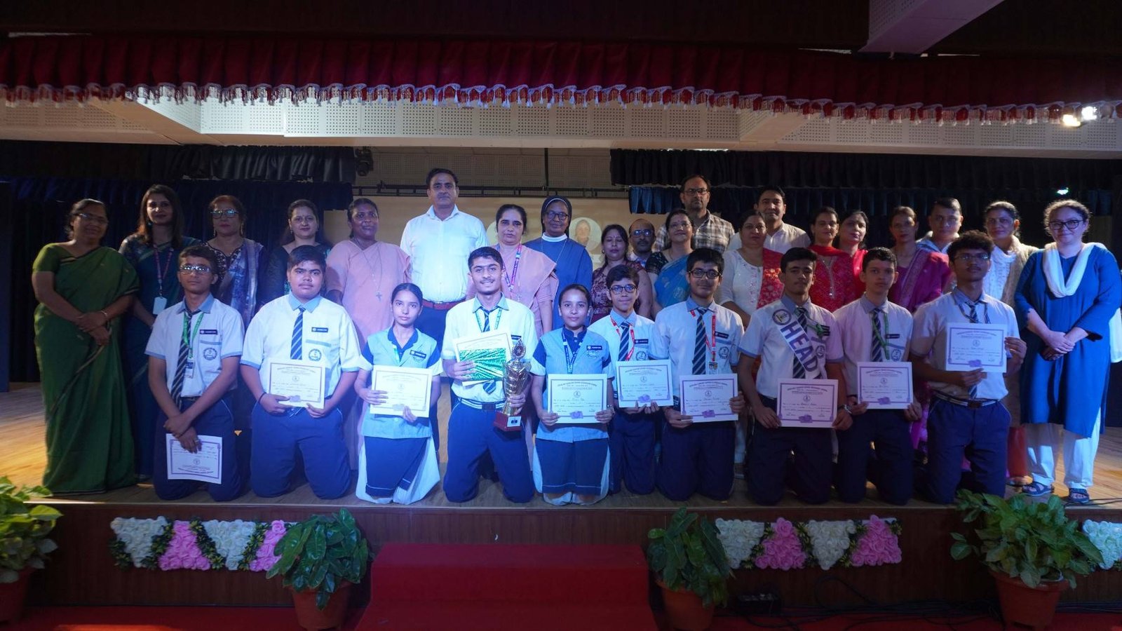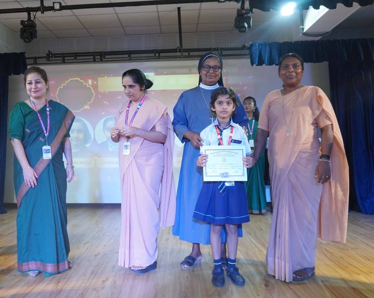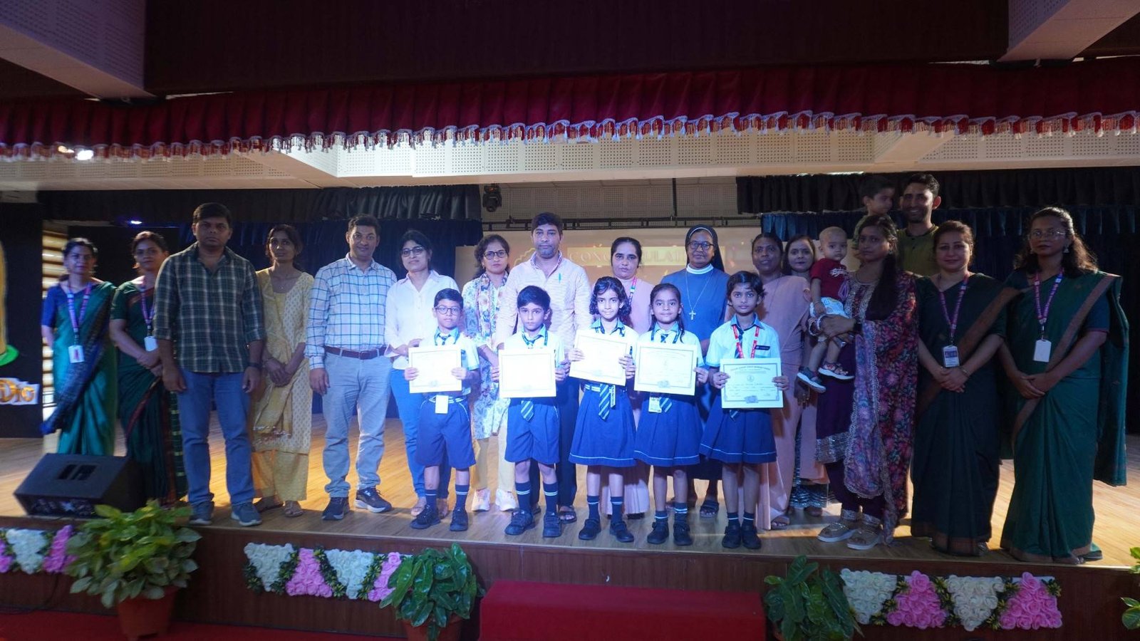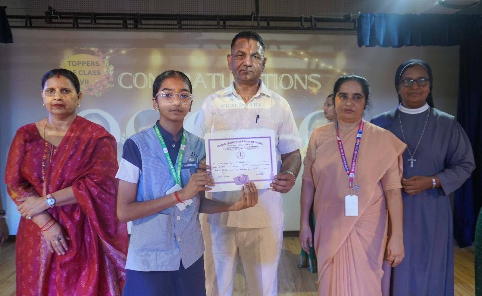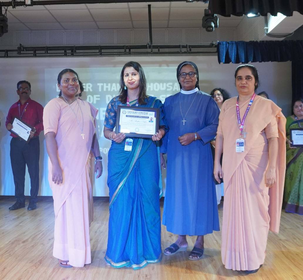 “A Celebration of Dreams, Dedication, and Deep Pride” “Success is not just about what you accomplish in life, but what you inspire others to do.” Our Valedictory Function echoed this truth in every moment, celebrating not just academic scores, but the spirit, sincerity, and silent perseverance behind them. Students from Nursery to Class XII were part of this proud occasion, the class-wise toppers were honoured for their staunch dedication. A moment of special honour was the presence of our Chief Guests, Mr. Devender and Mrs. Hemlata Bansal, proud parents of Mihir Bansal. The ceremony glowed brighter as we celebrated our school toppers—Mihir Bansal of Class XII, who achieved a remarkable 98.8%, and Yugank of Class X, who stood tall with an extraordinary 99%. These names were more than just figures of merit; they were stories of grit, consistency, and quiet brilliance. Adding to the spirit of gratitude, the teachers of Classes X and XII, whose students scored a perfect 100% in individual subjects, were also felicitated—honouring the guiding hands behind every shining child. The awards were graciously presented by Reverend Sister Anu George, our School Manager; Reverend Sister Rekha, our Principal; and Sister Mamitha, our devoted Office Administrator. More than a ceremony, it was a reflection of the school’s soul—where potential is nurtured, dreams are ignited, and every milestone becomes a memory.