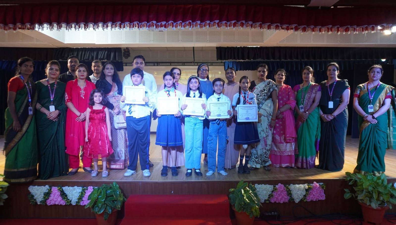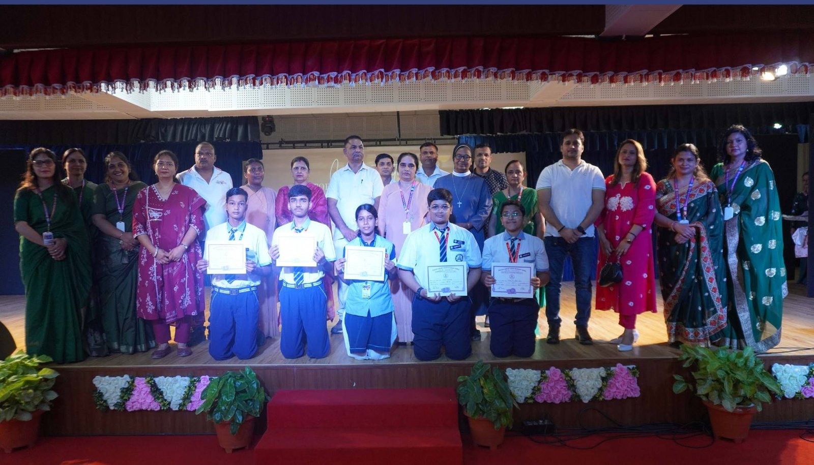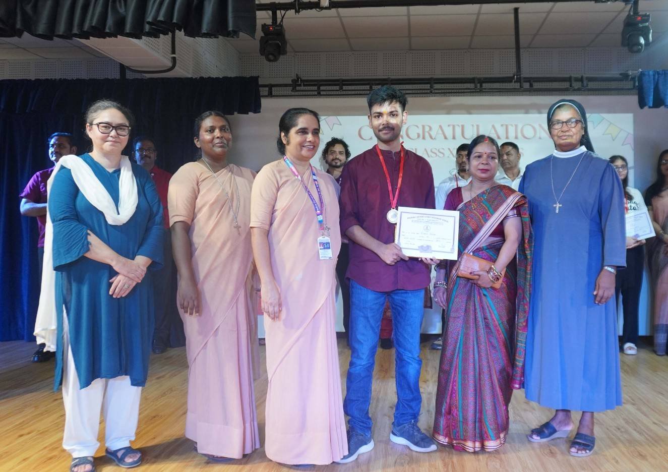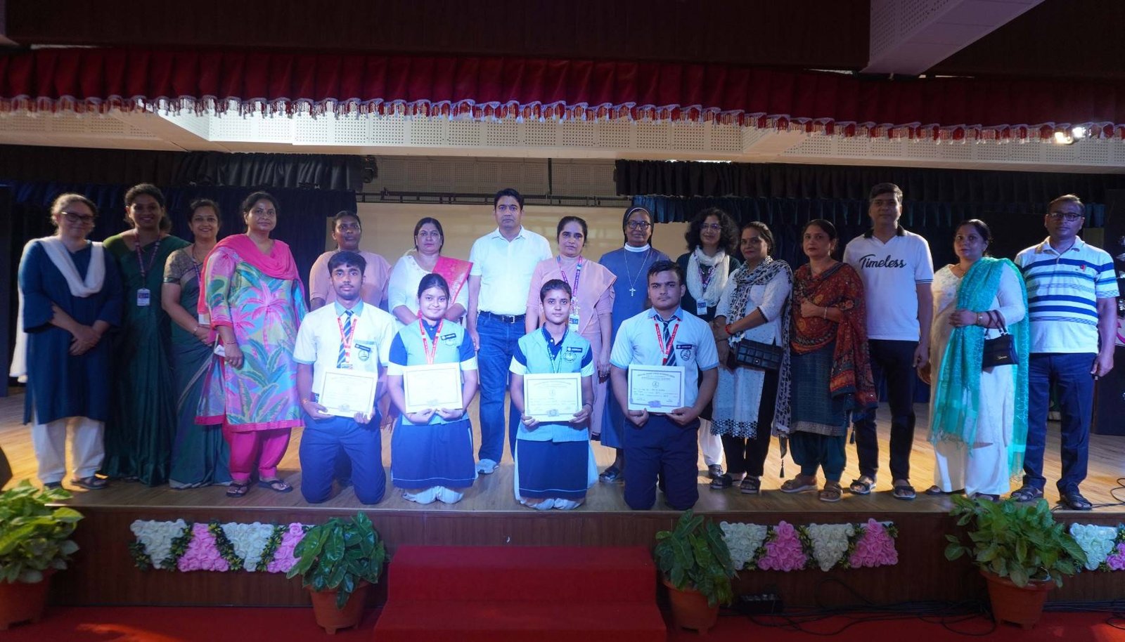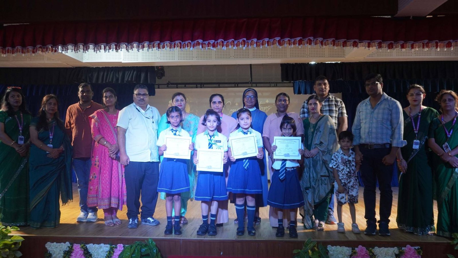 “A Celebration of Dreams, Dedication, and Deep Pride” “Success is not just about what you accomplish in life, but what you inspire others to do.” Our Valedictory Function echoed this truth in every moment, celebrating not just academic scores, but the spirit, sincerity, and silent perseverance behind them. Students from Nursery to Class XII were part of this proud occasion, the class-wise toppers were honoured for their staunch dedication. A moment of special honour was the presence of our Chief Guests, Mr. Devender and Mrs. Hemlata Bansal, proud parents of Mihir Bansal. The ceremony glowed brighter as we celebrated our school toppers—Mihir Bansal of Class XII, who achieved a remarkable 98.8%, and Yugank of Class X, who stood tall with an extraordinary 99%. These names were more than just figures of merit; they were stories of grit, consistency, and quiet brilliance. Adding to the spirit of gratitude, the teachers of Classes X and XII, whose students scored a perfect 100% in individual subjects, were also felicitated—honouring the guiding hands behind every shining child. The awards were graciously presented by Reverend Sister Anu George, our School Manager; Reverend Sister Rekha, our Principal; and Sister Mamitha, our devoted Office Administrator. More than a ceremony, it was a reflection of the school’s soul—where potential is nurtured, dreams are ignited, and every milestone becomes a memory.